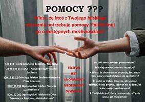 Powiatowe Centrum Pomocy Rodzinie w Kępnie przekazuje ulotki informacyjne z numerami telefonów zaufania dla dzieci i młodzieży borykających się z problemem depresji. ...