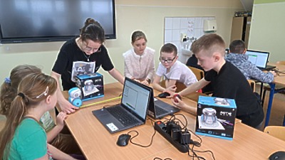 W lutym uczniowie klas trzecich uczestniczyli w zajęciach z robotyki. Roboty, z którymi pracowali pozyskane zostały przez szkołę w ramach projektu "Laboratoria przyszłości".
