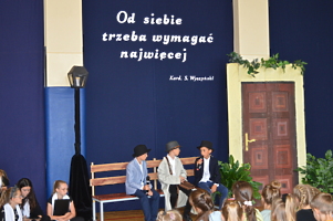 Po części artystycznej głos zabrali goście. Do uczniów swoje słowa skierowali: ks. kanonik Mariusz Buczek, Wójt Gminy Trzcinica Grzegorz Hadzik oraz Pani Małgorzata Hadzik. Wszyscy podkreślali wartość tego czasu oraz odnieśli się do samej osoby bł. kard. Stefana Wyszyńskiego.