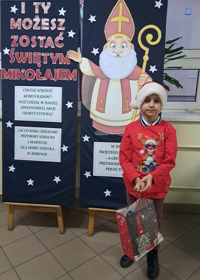 Jak co roku w okresie Adwentu nasza szkoła włącza się w różne akcje pomocowe. Tradycyjnie już w tym okresie odbywa się zbiórka słodyczy i przyborów szkolnych dla dzieci z Domu Dziecka w Kosewie. Tegoroczna akcja miała charakter jednodniowy i miała miejsce 6 grudnia. Przyświecało jej hasło – „I TY MOŻESZ ZOSTAĆ ŚWIĘTYM MIOŁAJEM”. Od samego rana uczniowie naszej szkoły przynosili dary dla swoich koleżanek i kolegów, którzy są w potrzebie. Wszystkie zebrane dary już w najbliższych dniach trafią do adresatów akcji, by umilić im nadchodzący świąteczny czas.