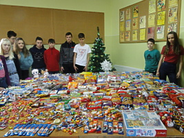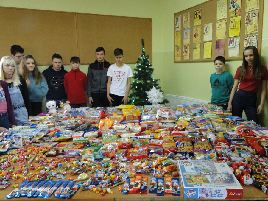 Jak co roku w czasie Adwentu uczniowie, nauczyciele i pracownicy naszej szkoły uczestniczyli w zbiórce słodyczy i przyborów szkolnych dla dzieci z zaprzyjaźnionego Domu Dziecka w Kosewie. Od wielu lat wspieramy ten Dom w okresie Świąt Bożego Narodzenia i Wielkanocy. Dzięki akcji wzbudzamy w naszych uczniach chęć niesienia pomocy innym, uczymy zauważać wokół siebie osoby potrzebujące. Inicjatorem działań w ramach zbiórki była pani Renata Adamska, a koordynatorami członkowie Szkolnego Koła Wolontariatu oraz uczniowie klasy VIIb.