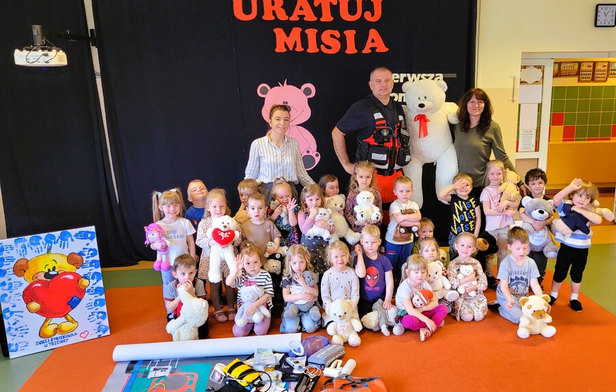 Niezastąpionymi uczestnikami tej akcji były pluszowe misie – te przedszkolne i specjalnie na to spotkanie przyniesione przez dzieci z domu.