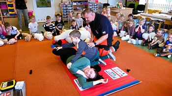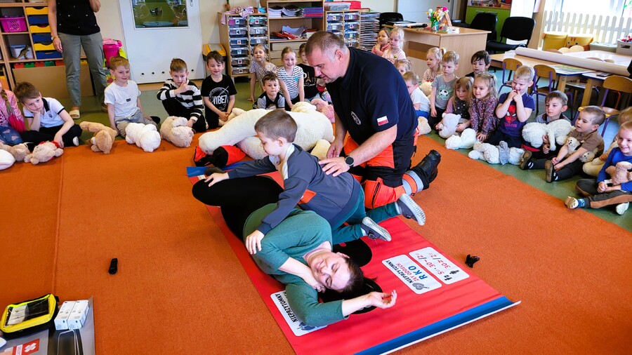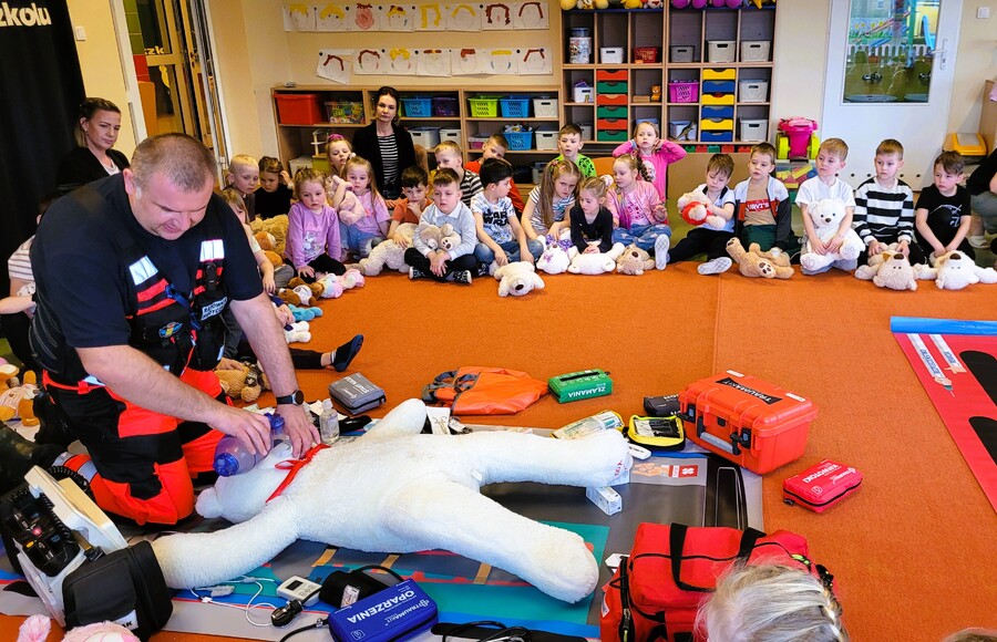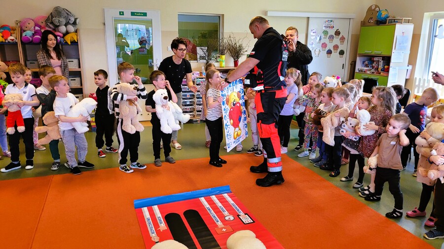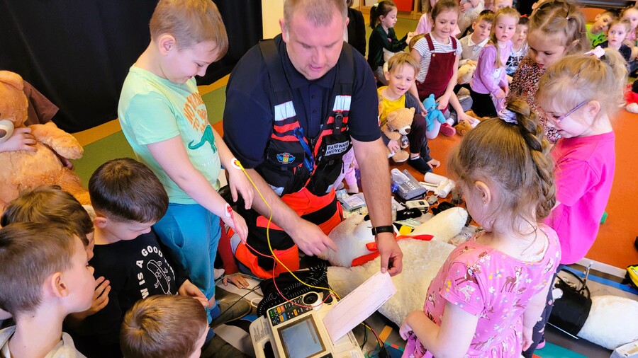 25 marca do przedszkolaków zawitał ratownik medyczny pan Miron Leśniarek – kierownik ratownictwa medycznego w Kępnie, aby przedstawić dzieciom w jaki sposób nawet tacy „mali” mogą pomóc w ratowaniu życia.