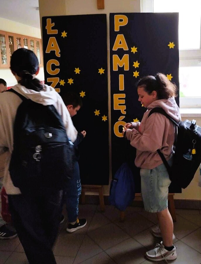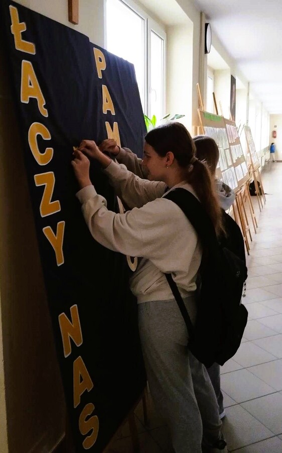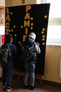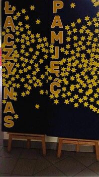 Dziś wchodząc do szkoły każdy kto chciał mógł w symboliczny sposób uczcić pamięć o tym wydarzeniu przypinając otrzymanego żonkila do planszy pod hasłem „Łączy nas pamięć”.