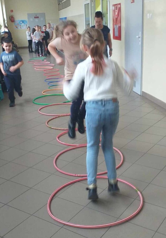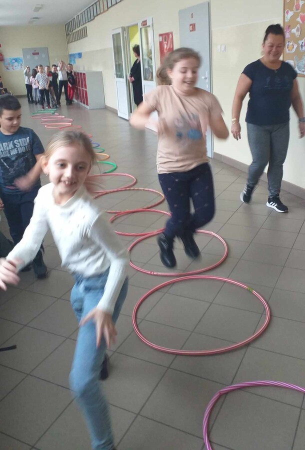 Pogoda nas ostatnio nie rozpieszcza. Wiatry i deszcze, częste przeziębienia zatrzymują większość uczniów w szkole w czasie przerw śródlekcyjnych oraz świetlic, ale i na to jest sposób. Aktywne świetlice zaproponowane uczniom klas I-III zostały radośnie przyjęte przez najmłodszych. Wspólna zabawa ruchowa na szkolnym korytarzu okazała się świetnym odreagowaniem i dobrą rozrywką w pochmurne dni.