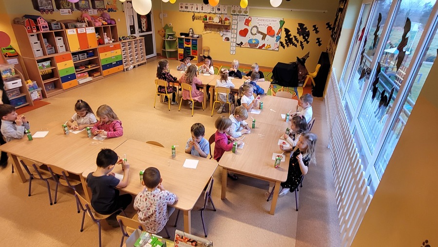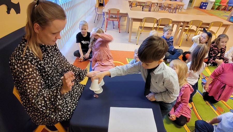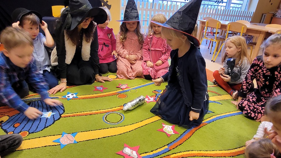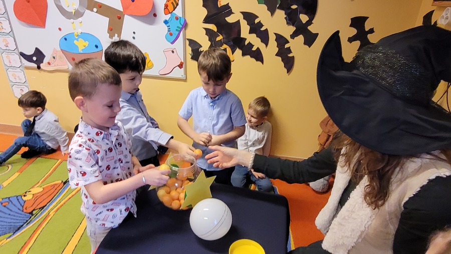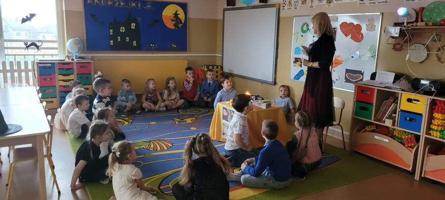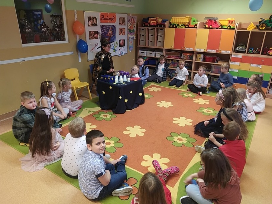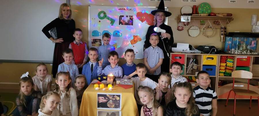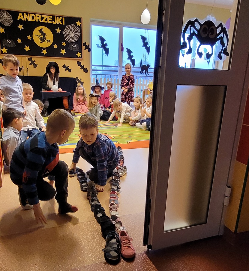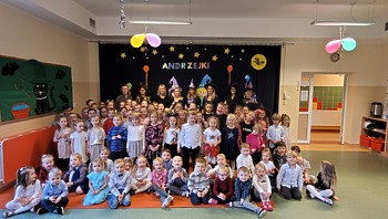 Wróżby i zabawa andrzejkowa towarzyszyły przedszkolakom 30 listopada 2022r. W tym dniu dzieci poznały różne wróżby. Wystawiały buty, losowały zawody, odczytywały imiona przyszłych ukochanych i odkrywały kubki, pod którymi ukryte były symbole tego, co los im przyniesie w przyszłości. Magiczna kula towarzyszyła zabawie dzieci ze wszystkich grup przedszkolnych. Mamy przedszkolaków przygotowały dzieciom słodkie i owocowe przekąski, którymi w czasie zabawy częstowały się dzieci.