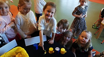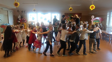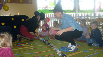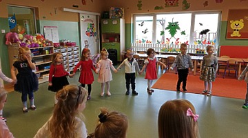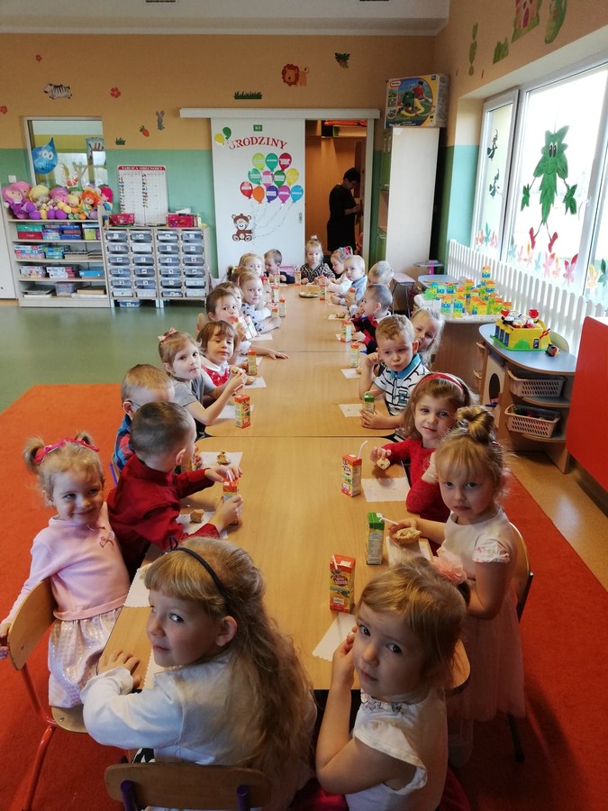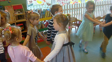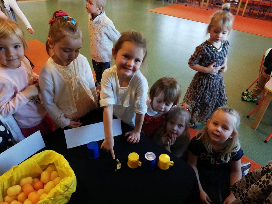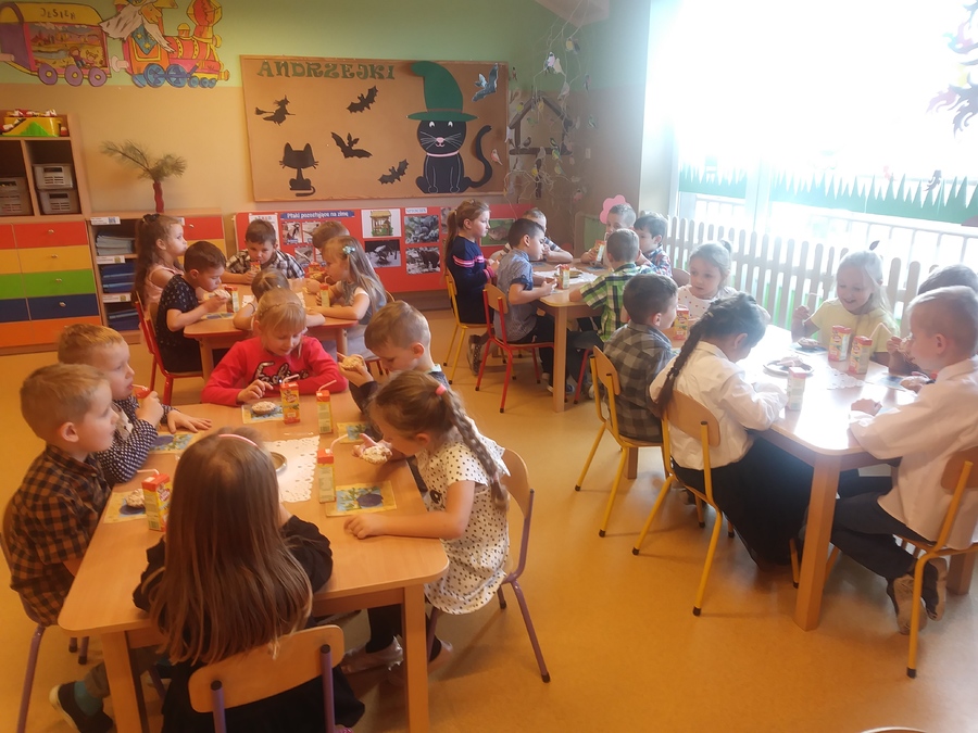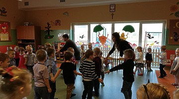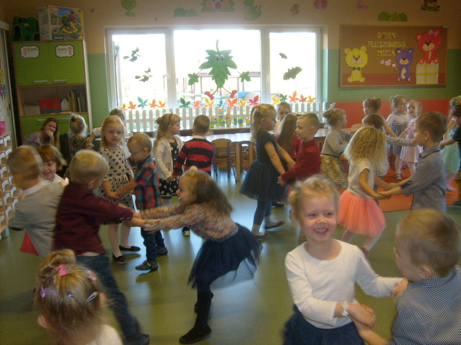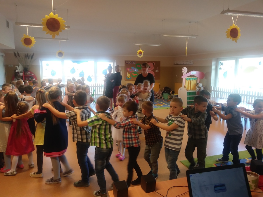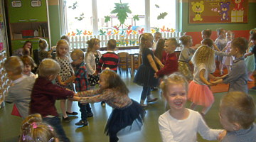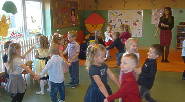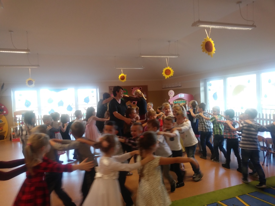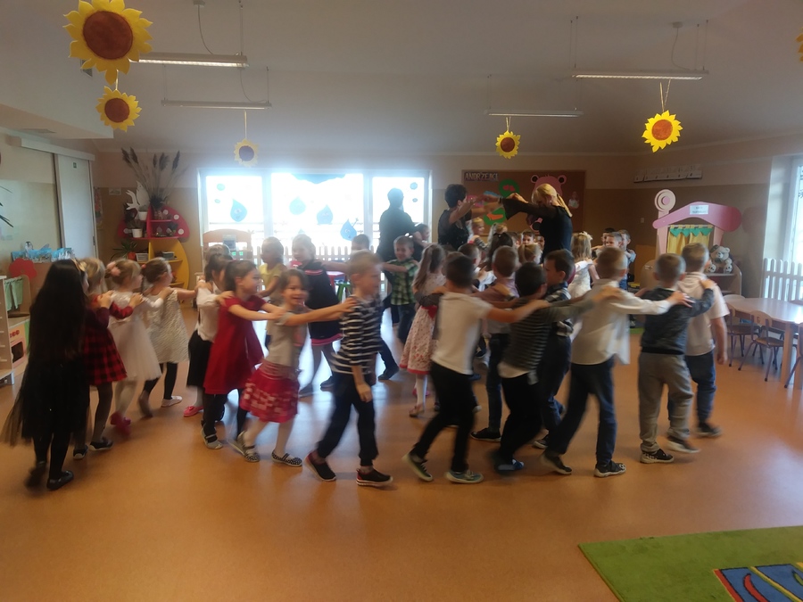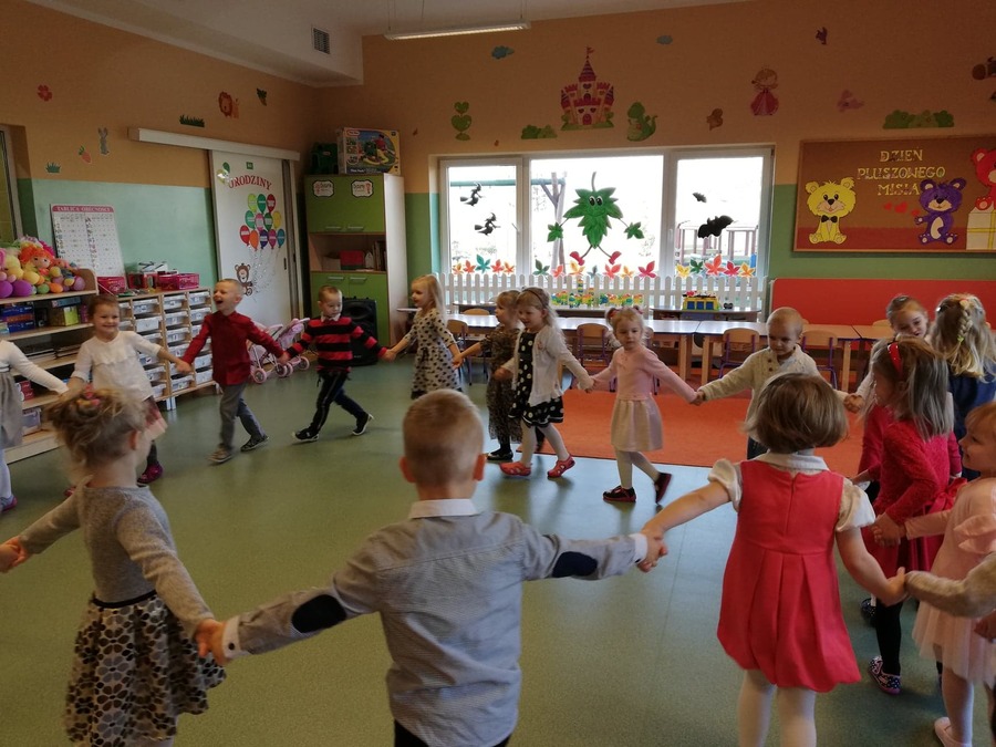 W piątek 30 listopada w imieniny Andrzeja przedszkolacy uczestniczyli we wróżbach andrzejkowych. Rozmowy o tradycjach ludowych związanych z tym dniem prowadzone były już wcześniej. Dzieci we wszystkich grupach przygotowywały się wykonując ozdoby i ćwicząc tańce. Różnorodność wróżb i stworzenie przez nauczycielki magicznego nastroju z przygaszonym światłem sprawiły, że dzień ten stał się jak ze świata baśni. Rodzice przygotowali specjalne kotyliony, które ucieszyły wszystkie dzieci. Zabawa przy muzyce z dziecięcego repertuaru i popularnych przebojów pozwoliła powrócić do rzeczywistości. Rada Rodziców zadbała, aby przedszkolakom w tej wyśmienitej zabawie nie zabrakło sił przygotowując dla nich babeczkowy poczęstunek z napojami.