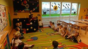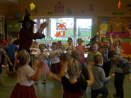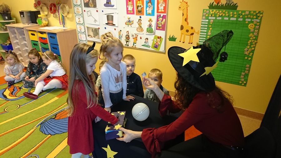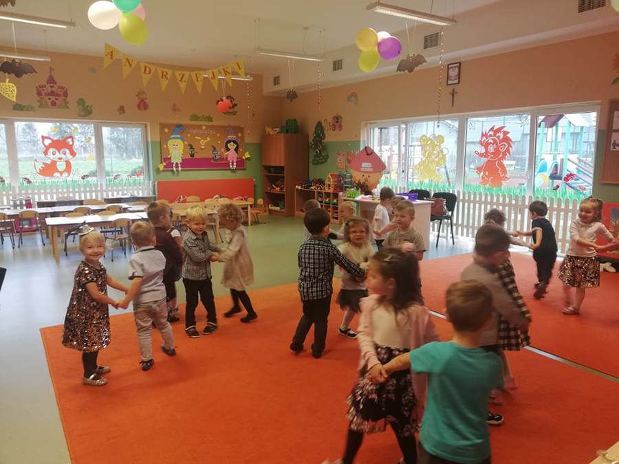 Dzieci z każdej grupy przedszkolnej uczestniczyły we wróżbach, które przygotowały nauczycielki, a były to między innymi: wystawianie butów, losowanie zawodów i imion przyszłych partnerów życiowych. Mogły również odczytać z magicznego pudełka „co miłego może je spotkać w najbliższym czasie”. Miłym przerywnikiem w czasie wróżb był poczęstunek w postaci mandarynek i soczków, który przygotowała Rada Rodziców. Dopełnieniem całości było spotkanie wszystkich grup przedszkolnych, podczas którego można było wymienić wrażenia i wspólnie potańczyć.