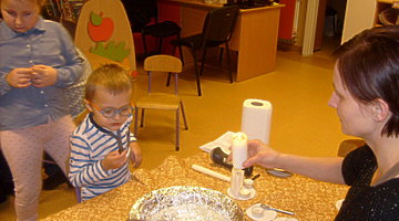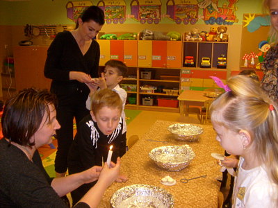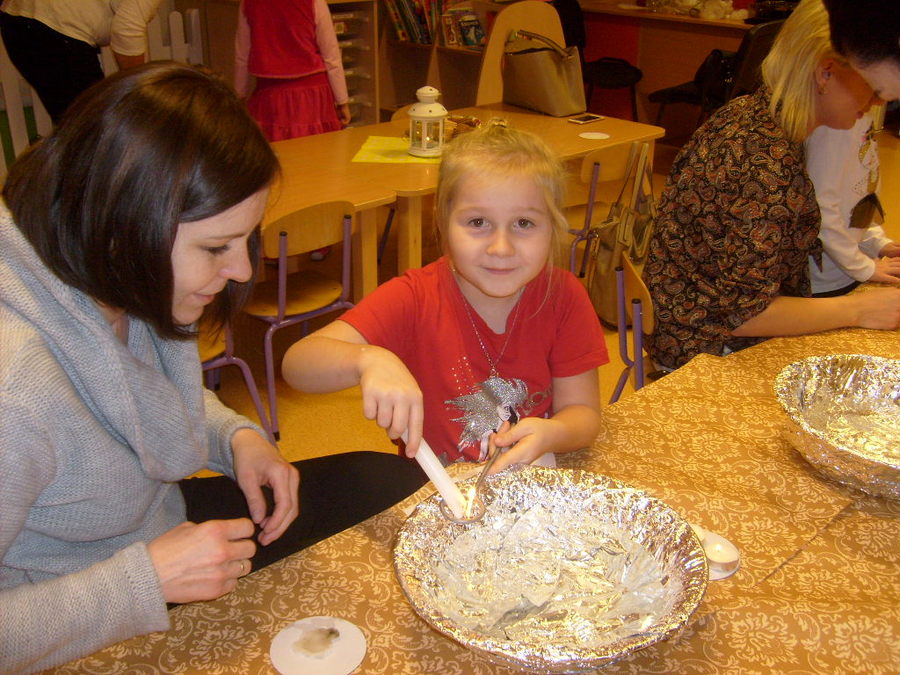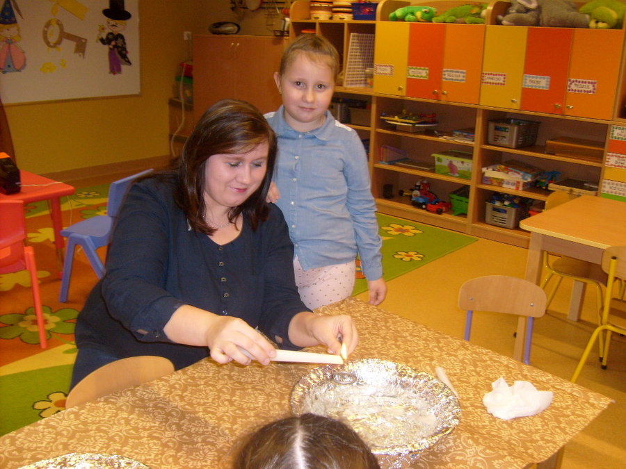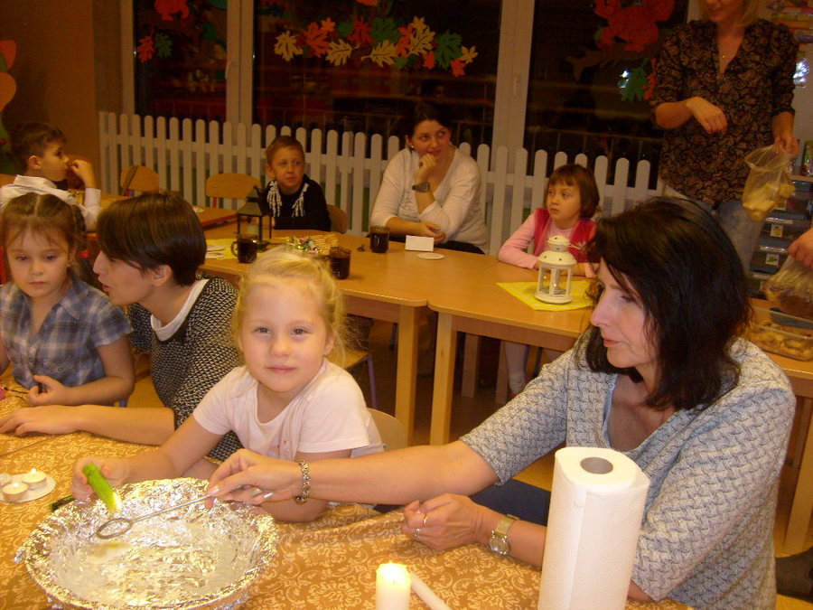 Wróżby andrzejkowe w przedszkolu rozpoczęły się 29 listopada 2016r. o godzinie 17.00 w grupie „Smoki Dinusie”. Tego popołudnia rodzice wraz z dziećmi spotkali się, aby przelać wosk przez klucz i odczytać z powstałej w ten sposób figurki, jaka czeka je przyszłość. Spotkanie to zorganizowali rodzice wspólnie z wychowawczynią panią Mariolą Bednarek. Przygotowano specjalny kącik wróżenia i ekran z rzutnikiem, przy pomocy którego oglądano powstałe kształty i recytowano (rodzic z dzieckiem) wierszyki lub krótkie rymowanki. Całość umilił słodki poczęstunek, o który zadbali rodzice.
