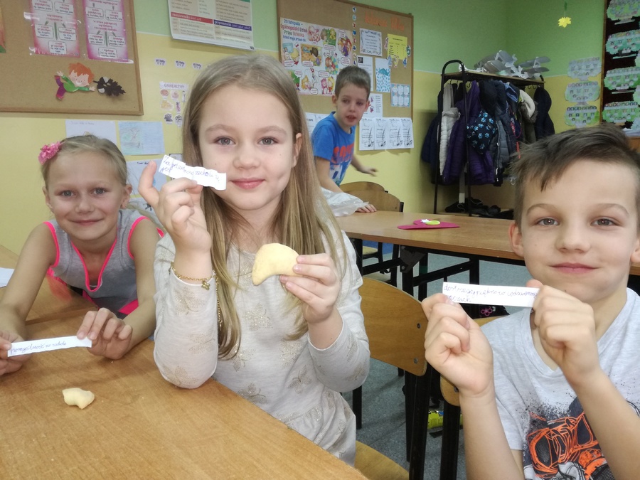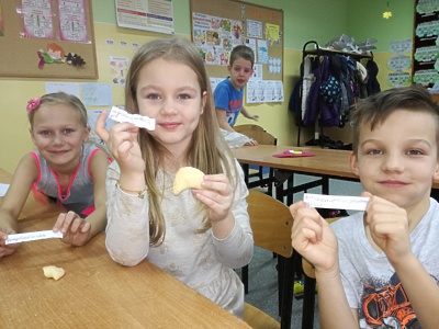 30 listopada 2017r. w naszej szkole obchodziliśmy Andrzejki – dzień wróżb i zabaw. Z tej okazji nauczycielki edukacji wczesnoszkolnej zorganizowały zabawę taneczną, podczas której uczniowie klas I-III wspólnie tańczyli przy wesołej muzyce. Po zabawie wszyscy udali się do klas, gdzie na każdego czekał słodki poczęstunek przygotowany przez Radę Rodziców. Nie zabrakło również wróżb! Wychowawcy klas zadbali o to, aby każdy mógł w tradycyjny sposób uczcić Andrzejki. Dzieci przekłuwały papierowe serce by odczytać imię swojej sympatii, losowali bileciki ze swoim przyszłym zawodem, lali wosk czy wystawiali buty. Jeden z uczniów razem ze swoją mamą przygotował wielką niespodziankę – upiekł ciasteczka z wróżbą, co sprawiło dzieciom wiele radości. Tego dnia wszyscy wspaniale się bawili, humory dopisywały, a pozytywne wróżby czekają na spełnienie!