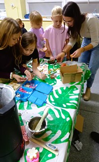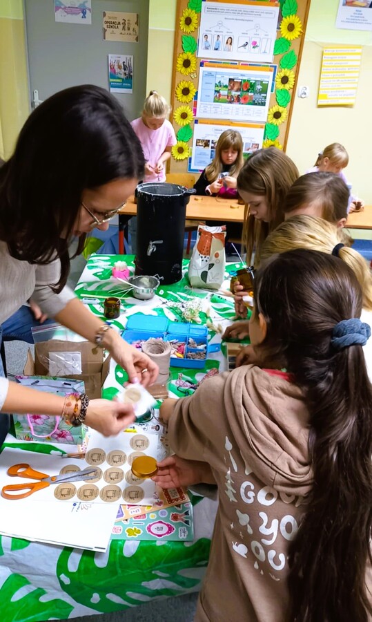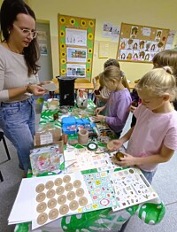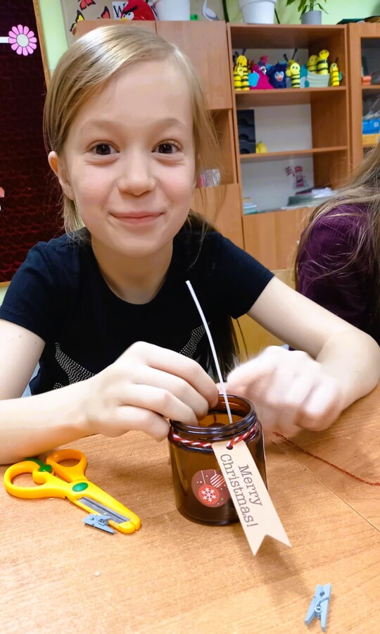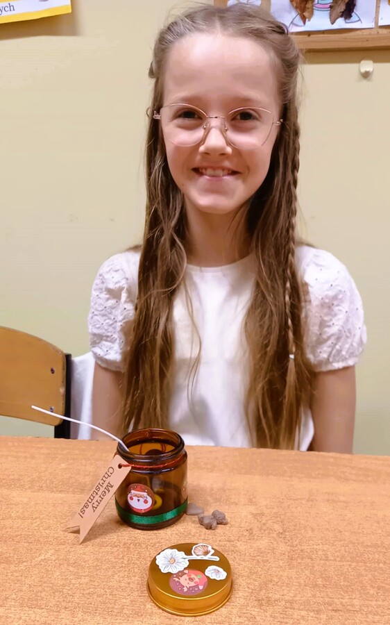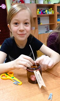 Dzięki tym wyjątkowym zajęciom powstały przepiękne woskowe dekoracje w barwnych słoiczkach, które wraz z innymi elementami zostały zakupione przez rodziców.