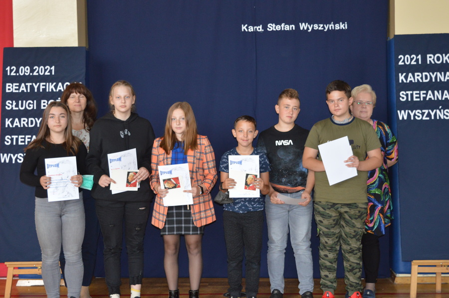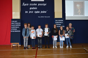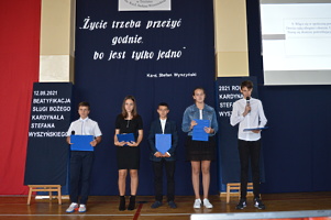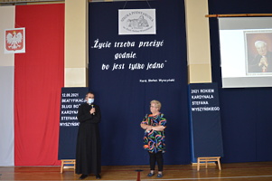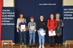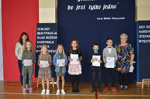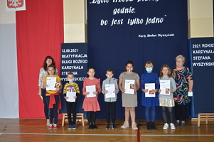 Na zakończenie wicedyrektor ZS w Trzcinicy Ewa Hetmańczyk podziękowała uczniom i nauczycielom za przygotowanie tego wydarzenia upamiętniającego beatyfikację i wręczyła nagrody i dyplomy w szkolnym konkursie wiedzy o Patronie.
