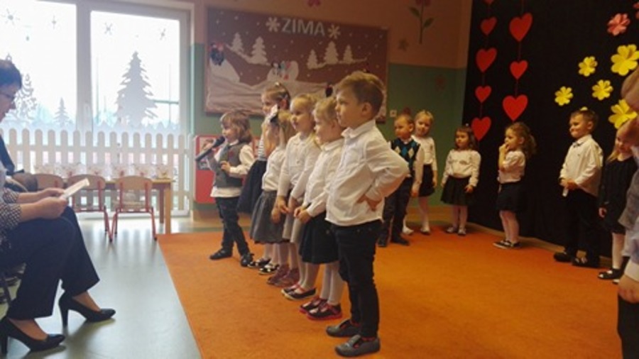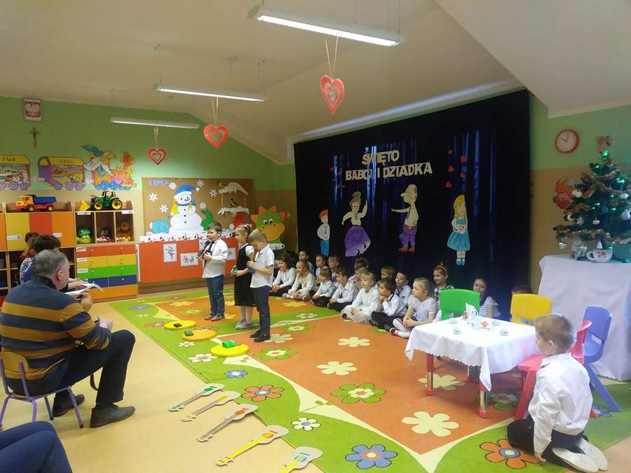 Składanie życzeń kochanym babciom i dziadkom w przedszkolu trwało 2 dni: 22 stycznia 2018r. w grupach „Smoki Dinusie” i „Muchomorki”, a 23 stycznia 2018r. w grupach „Krasnoludki” i „Jeżyki”.