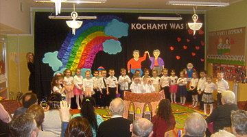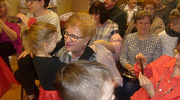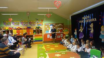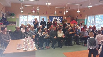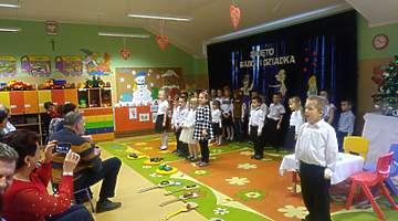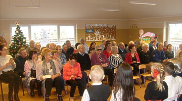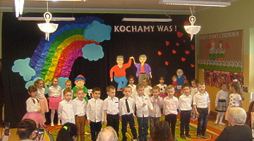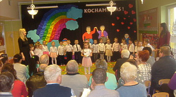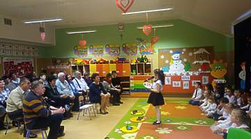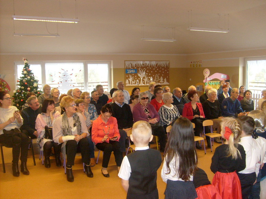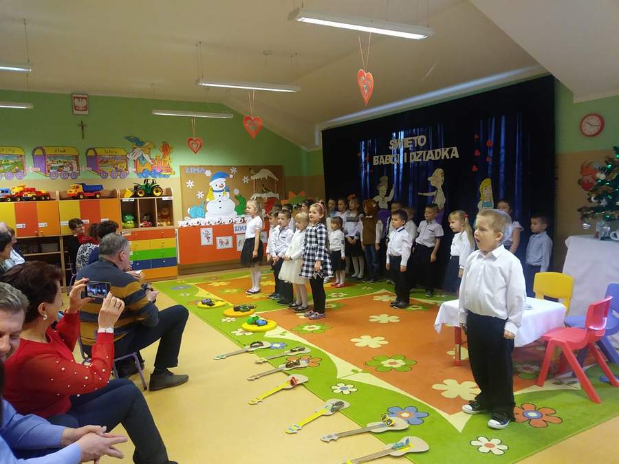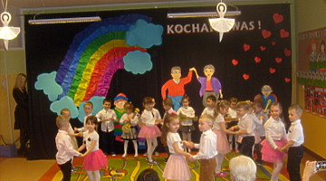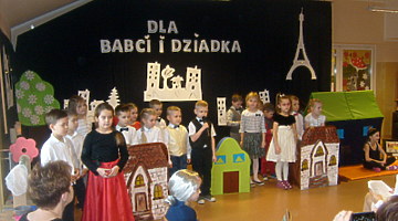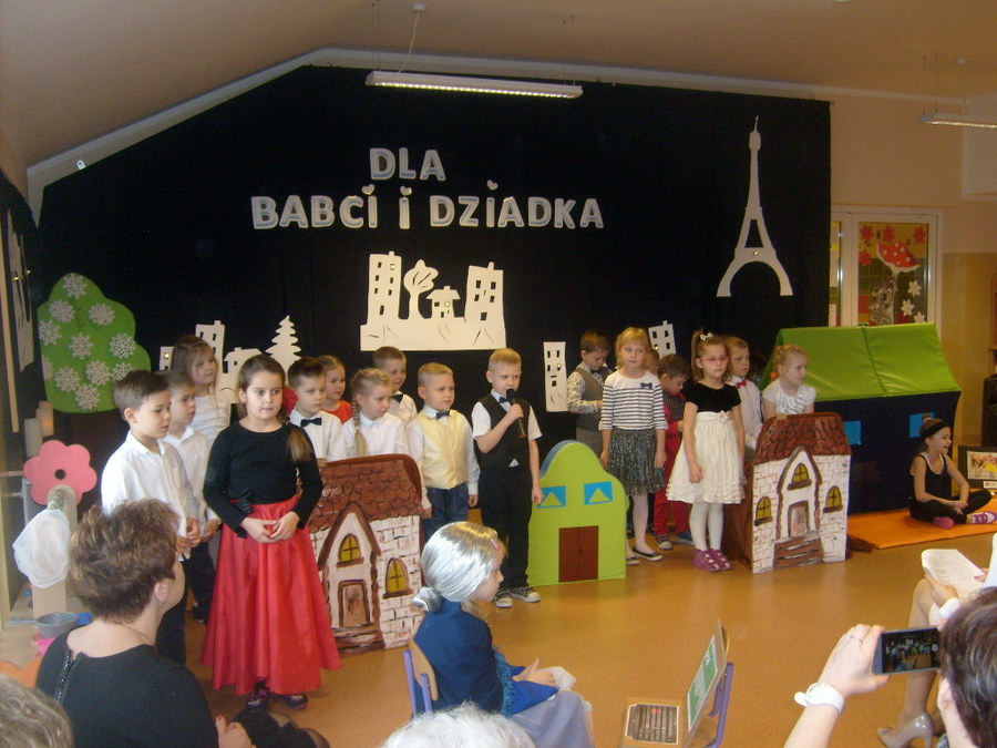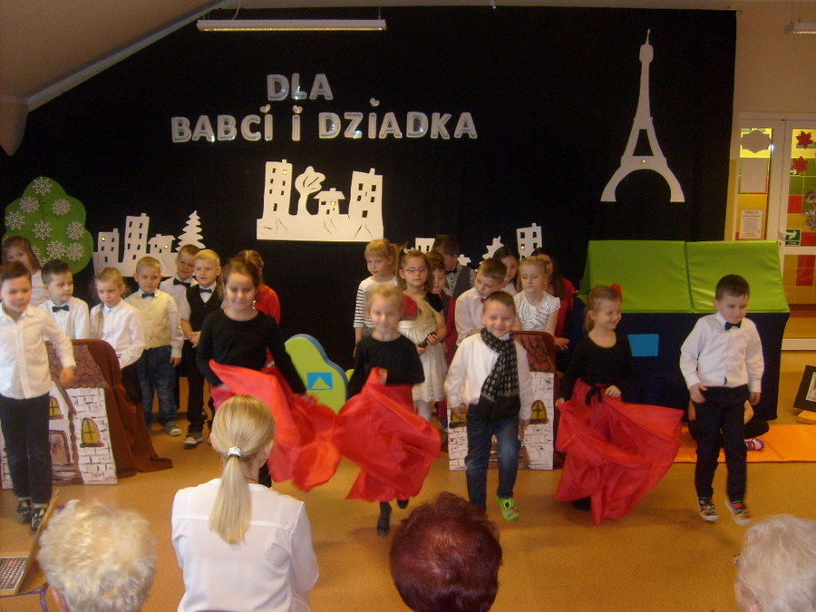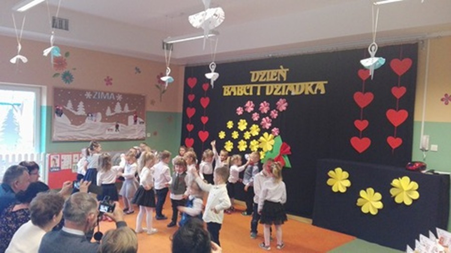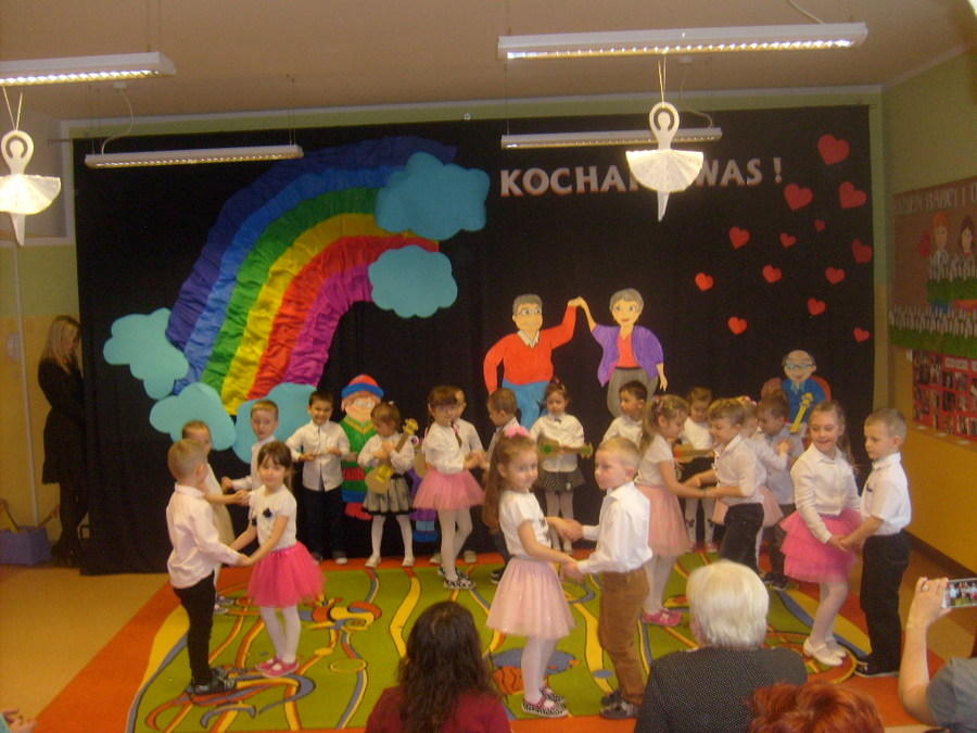Młodsze dzieci zachwycały swoich gości życzeniami i prezentacją taneczną ze śpiewem nawet w języku angielskim. Wszystkie dzieci wręczyły swoim kochanym dziadkom w prezencie filiżankę, a w niej herbatkę i na talerzyku cukierek na dokładkę. Panie Małgorzata Hadzik i Ewa Hetmańczyk – złożyły wszystkim gościom życzenia i podziękowały za udane występy dzieci.