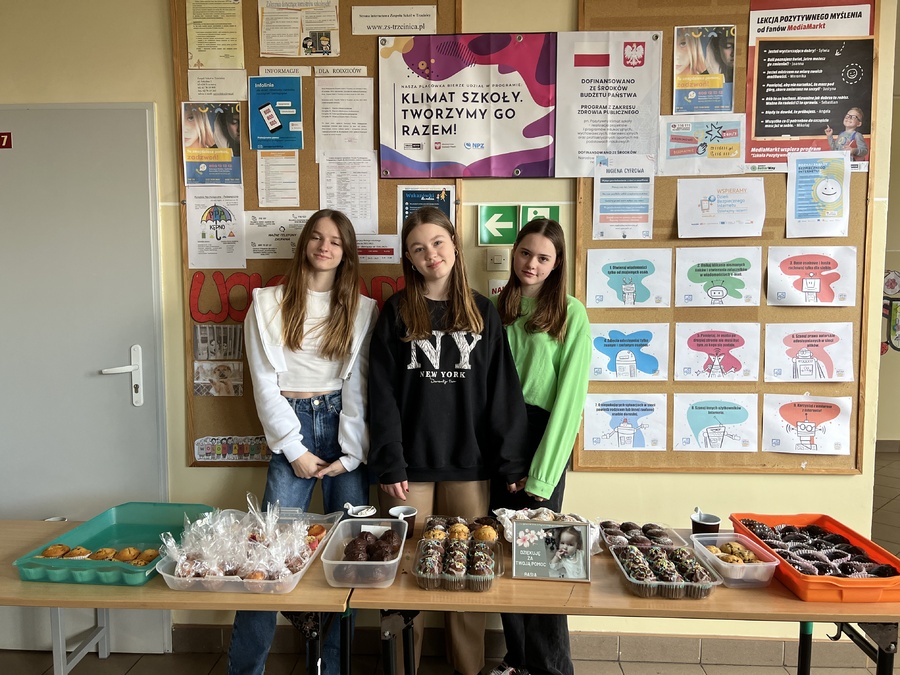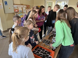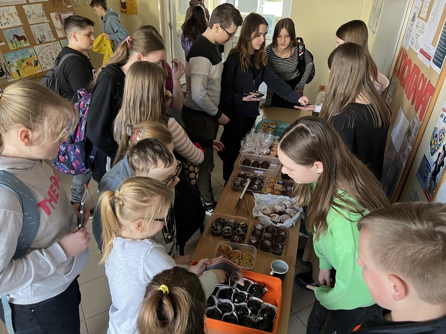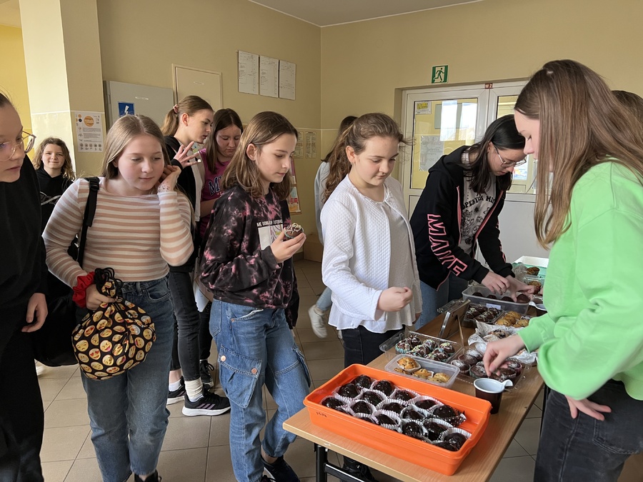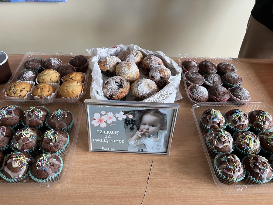 Kolejna udana akcja Szkolnego Koła Wolontariatu za nami. Tym razem poprzez sprzedaż babeczek zbieraliśmy fundusze dla Basi Szamicz chorej na SMA. Udało nam się zebrać 1.149 złotych. Pieniądze zostały przekazane na konto Fundacji Siepomaga z przeznaczeniem dla Basi. Jak zwykle zainteresowanie akcją było duże - dużo upieczonych babeczek i jeszcze więcej chętnych do ich kupna. Dziękujemy wszystkim za udział w akcji. Pamiętajmy, że dobro zawsze powraca.