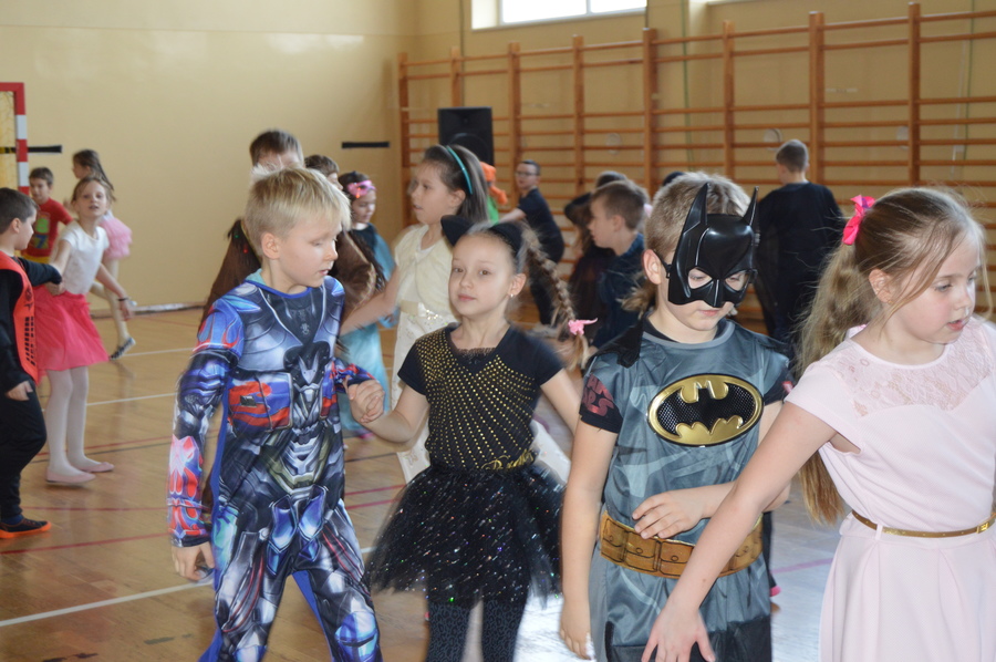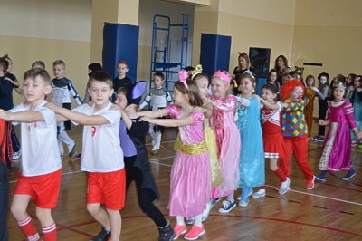 9 lutego 2018 roku w naszej szkole odbył się Bal Karnawałowy dla uczniów z klas I-III. Podczas zabawy uczniowie prezentowali i podziwiali piękne przebrania. To niesamowite ile księżniczek, królewiczów, rycerzy, baletnic, zwierzątek, gwiazd estrady, przedstawicieli różnych zawodów i narodowości, bohaterów kreskówek i filmów, postaci science fiction przybyło tego dnia do naszej szkoły. Wszyscy wspólne bawili się przy utworach, które królują co roku, takich jak „Kaczuchy”, „Makarena”, „Krasnoludek”, „Pociąg”. Nowością było wspólne wykonanie tańca „Belgijka”, do którego uczniowie przygotowywali się już wcześniej. Po wspólnym balowaniu w sali gimnastycznej, zabawy przeniosły się sal lekcyjnych, gdzie uczniowie brali udział w przygotowanych przez wychowawczynie konkursach i zabawach, m.in. zabawach z balonami, tańcach na gazecie, konkursach z krzesełkami, zabawie „Przyjęcie na zamku” itp.