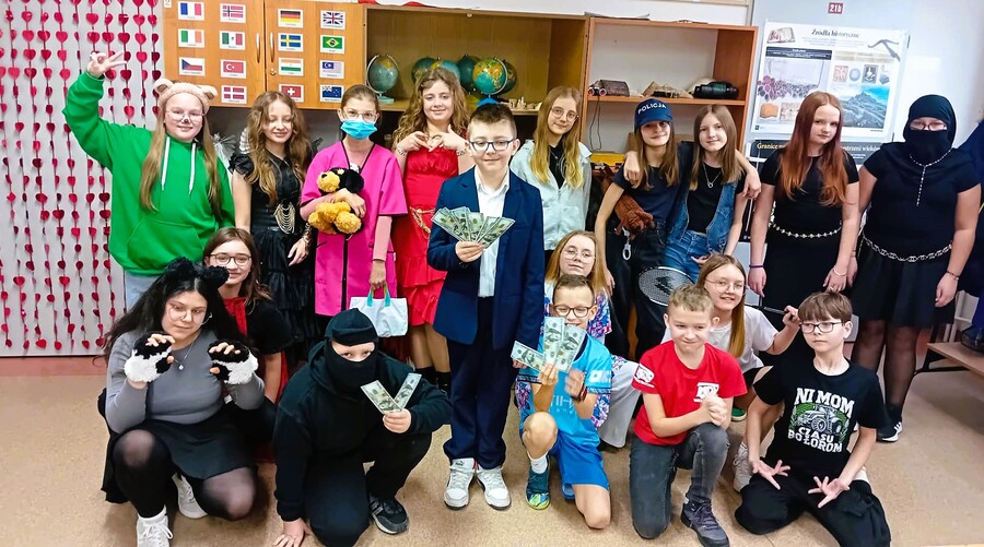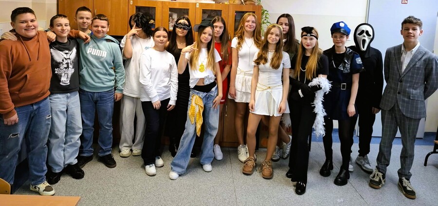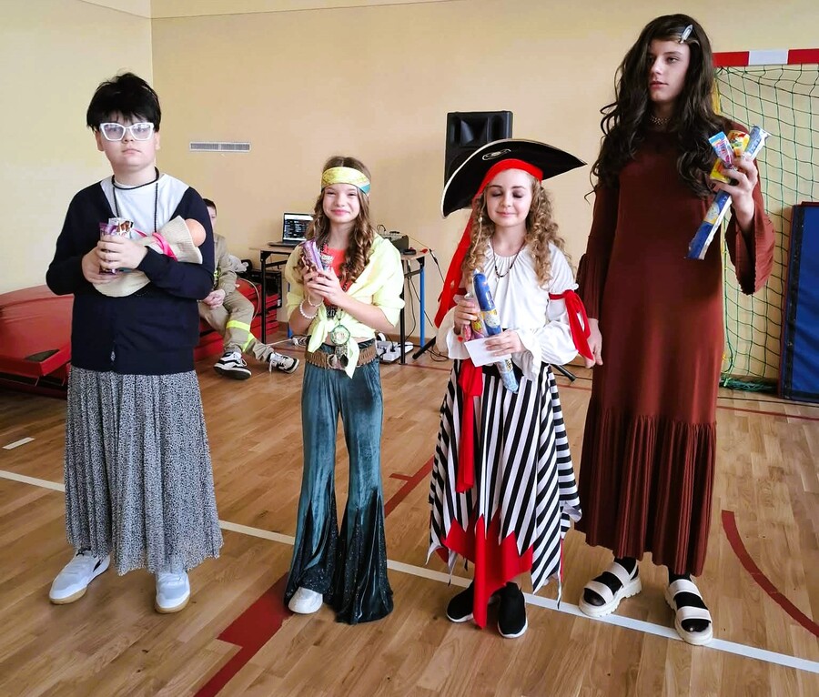 To coroczne wydarzenie, które zawsze cieszy się ogromnym zainteresowaniem wśród uczniów, stało się okazją do zaprezentowania kreatywności i wyobraźni w przebieraniu się w ciekawe kostiumy. Na szkolnych korytarzach wręcz zaroiło się od superbohaterów po postacie z bajek, od zwierząt po gwiazdy muzyki. Samorząd uczniowski przygotował również konkurs na najlepszy kostium, w którym każdy mógł zagłosować na swojego faworyta. Zwycięzcami zostali Kamil Adamek i Pola Żłobińska, a wyróżnienie otrzymali - Oktawian Żurek i Zofia Żłobińska. Dla zwycięzców przygotowano drobne, słodkie upominki.