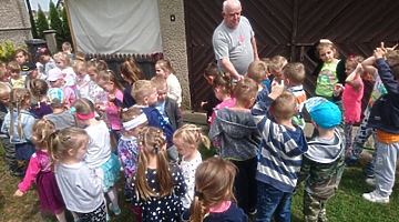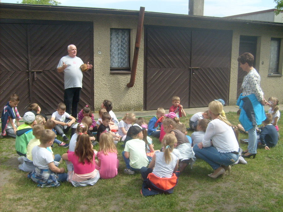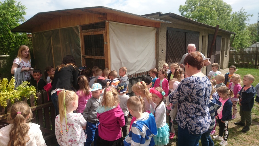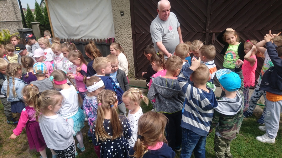 W maju przedszkolaki obejrzały hodowlę papug, którą prowadzi pan Zbigniew Skupień – dziadek jednej z podopiecznych przedszkola. Dzieci zobaczyły jak mieszkają i z bliska obserwowały jak żyją te kolorowe ptaki. Pan Zbyszek opowiedział przedszkolakom na czym polega hodowla i opieka nad tymi barwnymi ptakami. Przedstawił różne ciekawostki na temat papug falistych i nimf, które hoduje.
