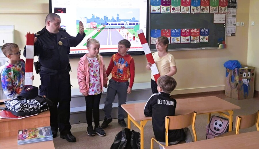 Goście przypomnieli wszystkim uczniom o podstawowych zasadach bezpieczeństwa na przejazdach kolejowo – drogowych. Uczniowie przypomnieli sobie w czasie trwania zajęć niezbędne oznaczenia przed przejazdami kolejowymi i ich znaczenie, dowiedzieli się jak reagować w sytuacjach zagrożenia i jakich sytuacji należy bezwzględnie unikać.