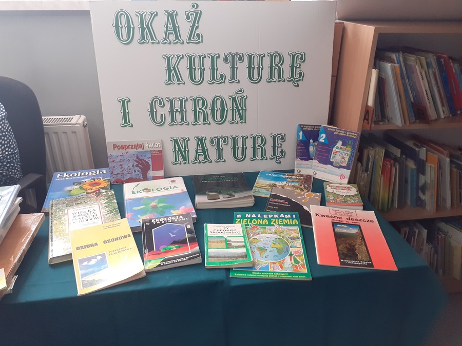 29 maja w naszej Szkolnej Bibliotece zorganizowany został Dzień Działań Ekologicznych. Wszystkie działania biblioteczne tego dnia odbywały się pod hasłem „ZIELONO MI”. Przy tej okazji zmieniło się samo pomieszczenie biblioteki, która witała czytelników zieloną dekoracją i biblioteczną wystawą książek ekologicznych pod hasłem „Okaż kulturę i chroń literaturę”.