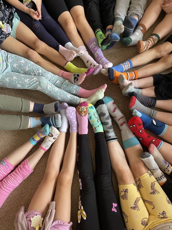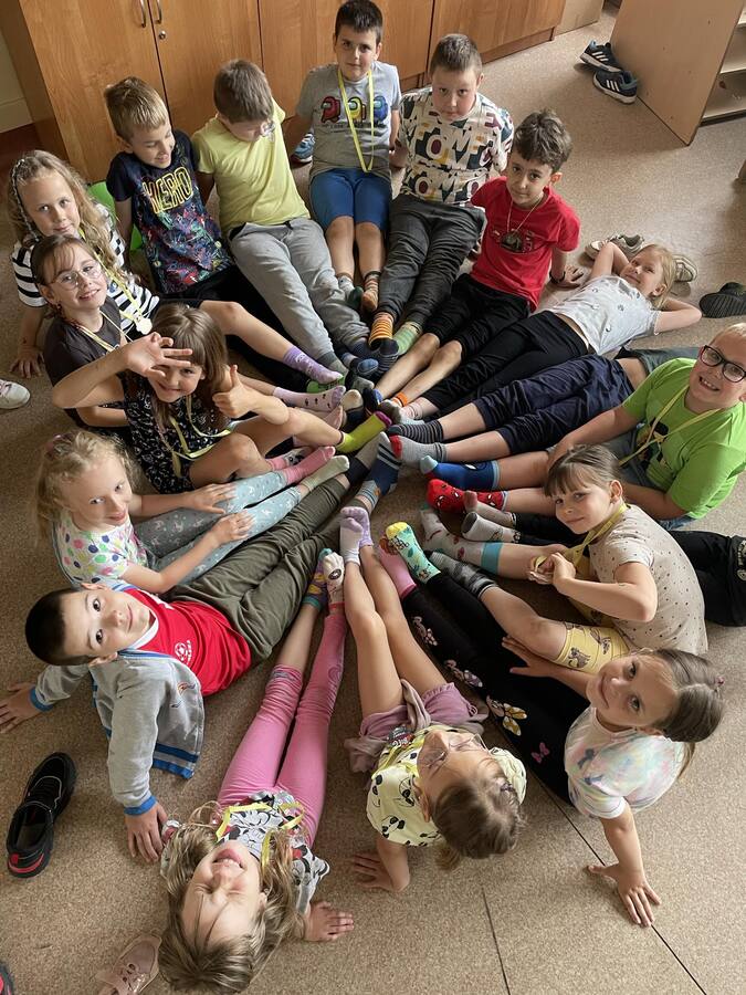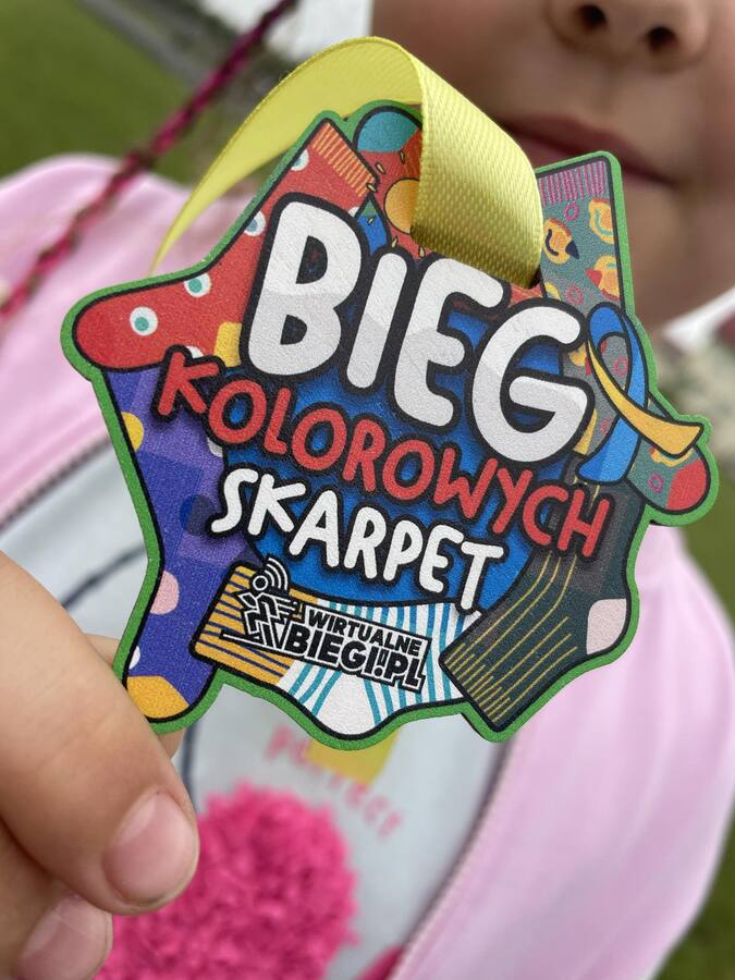3 czerwca, w dniu kiedy obchodziliśmy Dzień Dziecka, w naszej szkole odbył się BIEG KOLOROWYCH SKARPET. Najczęściej bieg ten jest związany ze Światowym Dniem Osób z zespołem Downa, nazywany również Dniem Kolorowej Skarpetki obchodzonym 21 marca. My jednak do tej akcji dołączyliśmy teraz. Wydarzenie co roku organizuje Fundacja „Coś Dobrego” i ma ono wyrażać wsparcie i akceptację dla osób z zespołem Downa oraz z innymi niepełnosprawnościami intelektualnymi.