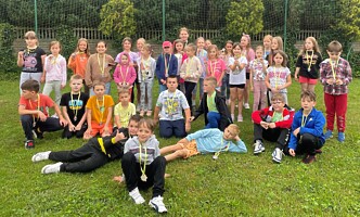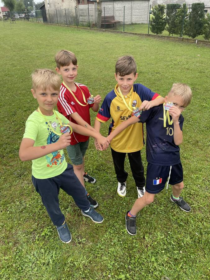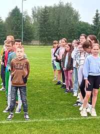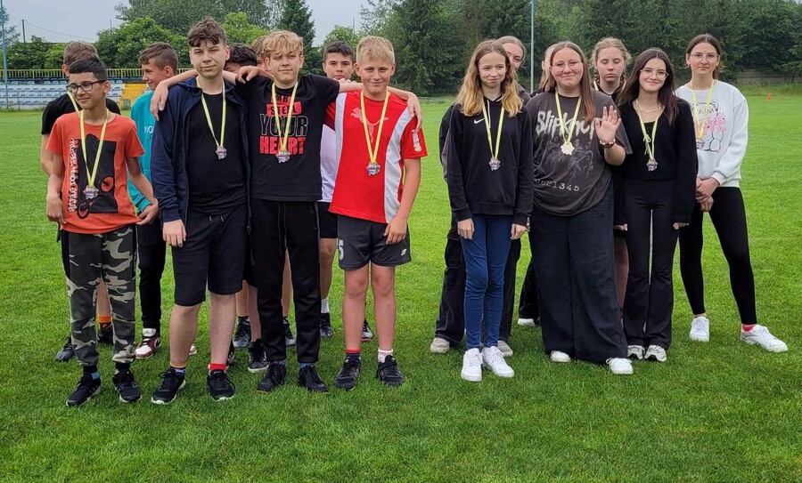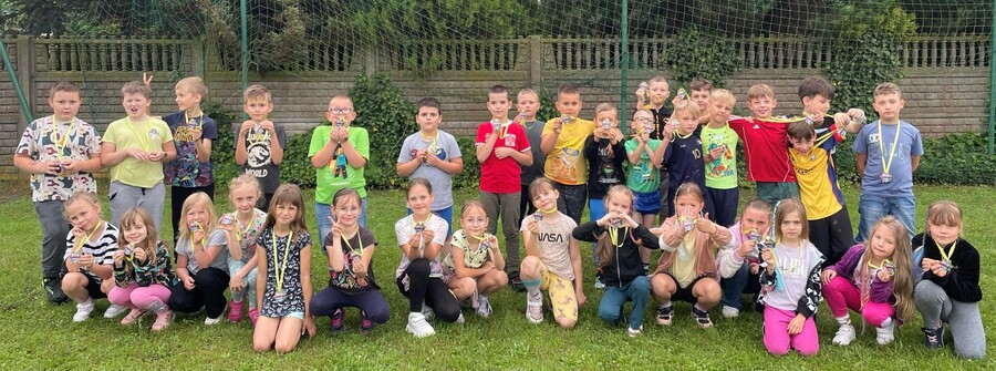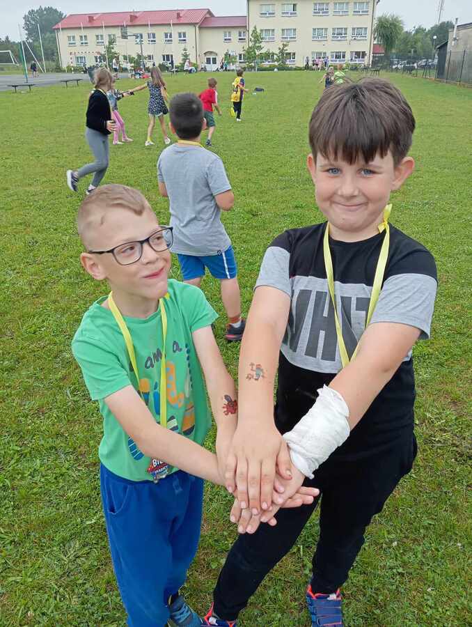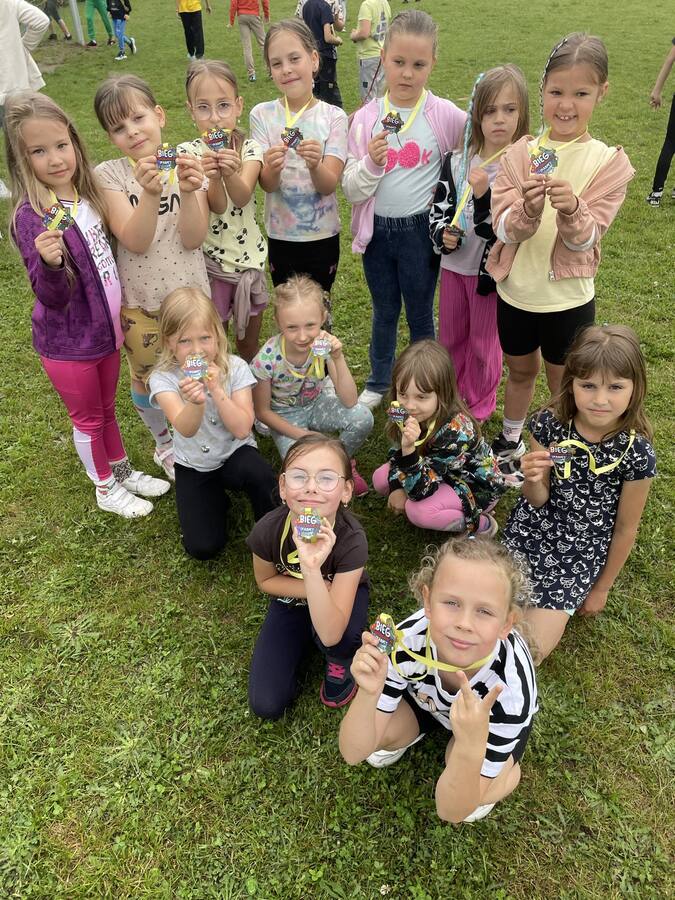 Na mecie biegu każdy uczestnik został uhonorowany pamiątkowym medalem, który wręczali biegaczom wychowawcy klas.