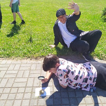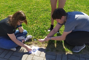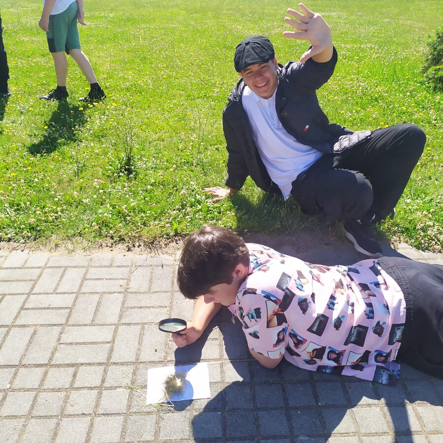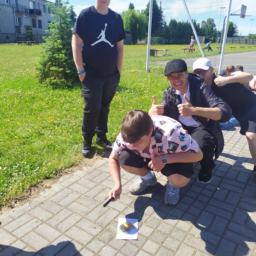 Ostatnim dniom nauki sprzyjała wspaniała pogoda, a uczniowie klas ósmych omawiali zagadnienia z działu OPTYKA. Wykorzystując słoneczny dzień poznali zasadę działania soczewek skupiających. W doświadczeniach poznali zadziwiającą moc skupionego światła, które wypalało dziury w kartkach. Dowiedzieli się również, że skupione światło słoneczne może łatwo wywołać pożar w lesie, jeśli trafi na pozostawioną tam szklaną butelkę.