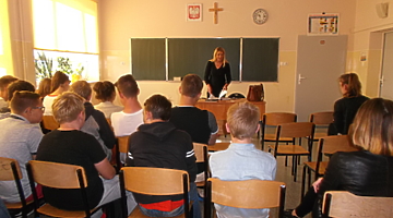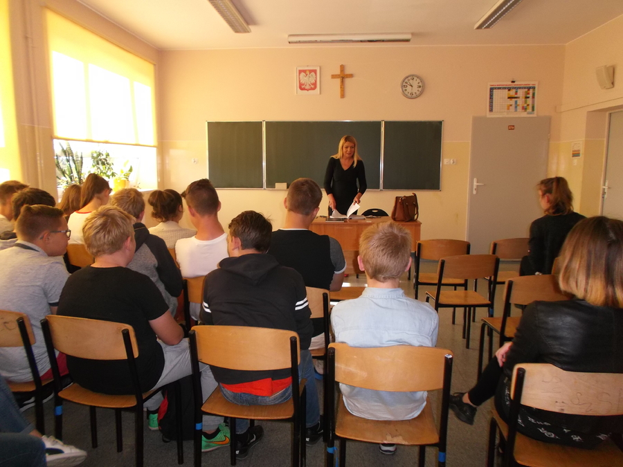 W piątek 30 września 2016r. na lekcję wiedzy o społeczeństwie w klasach II gimnazjum została zaproszona Poseł na Sejm Rzeczypospolitej Polskiej Pani Bożena Henczyca. Klasy II na poprzednich lekcjach omawiały zagadnienia związane z funkcjonowaniem polskiego parlamentu – Sejmu i Senatu. Podsumowaniem tych wiadomości była lekcja z Panią Poseł Bożeną Henczycą, która przybliżyła uczniom zadania wynikające z pełnienia funkcji posła. Pani Bożena Henczyca opowiadała m.in. o pracy posła w komisjach sejmowych, jak odbywa się procedowanie projektu ustawy, wyjaśniła również na czym polega inicjatywa obywatelska. Uczniowie dowiedzieli się także o zajęciach posła poza pracami w parlamencie. Na zakończenie spotkania uczniowie otrzymali pamiątkowe gadżety. Pani Poseł obiecała uczniom lekcje WOS-u w polskim parlamencie.