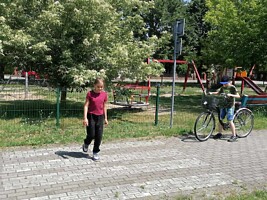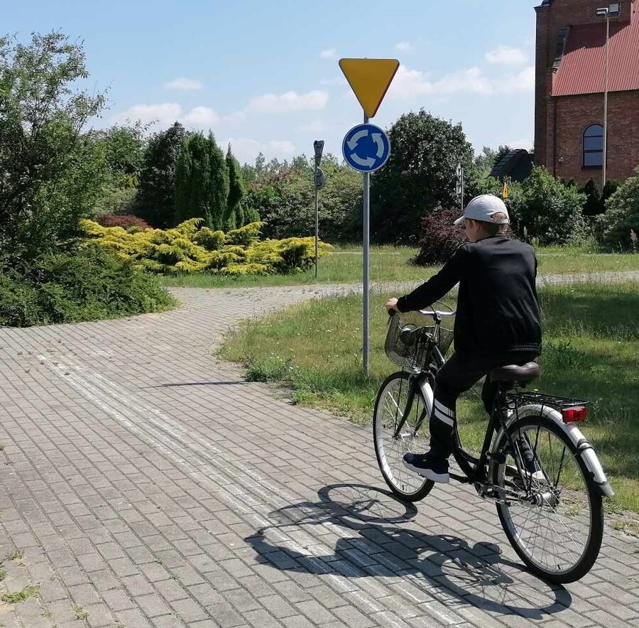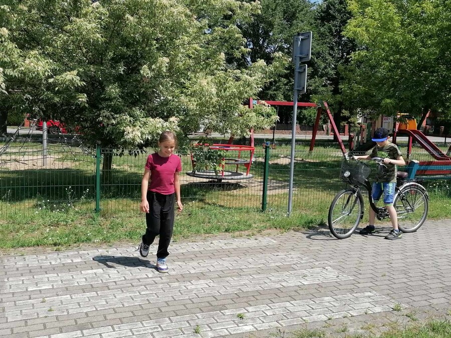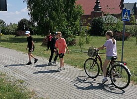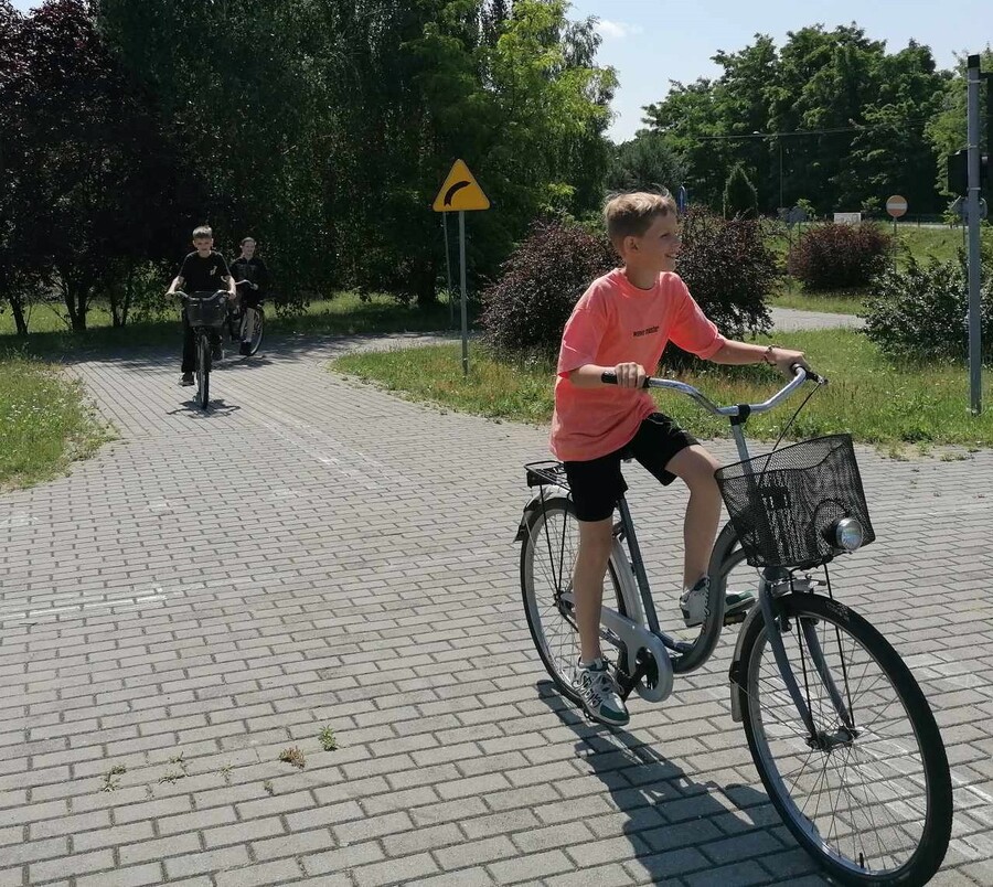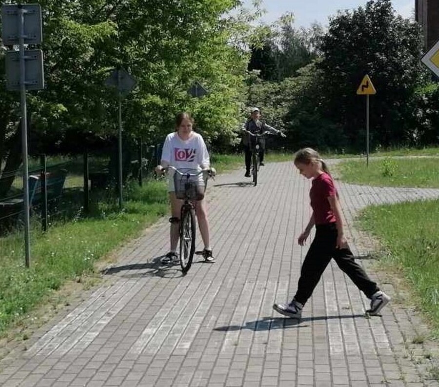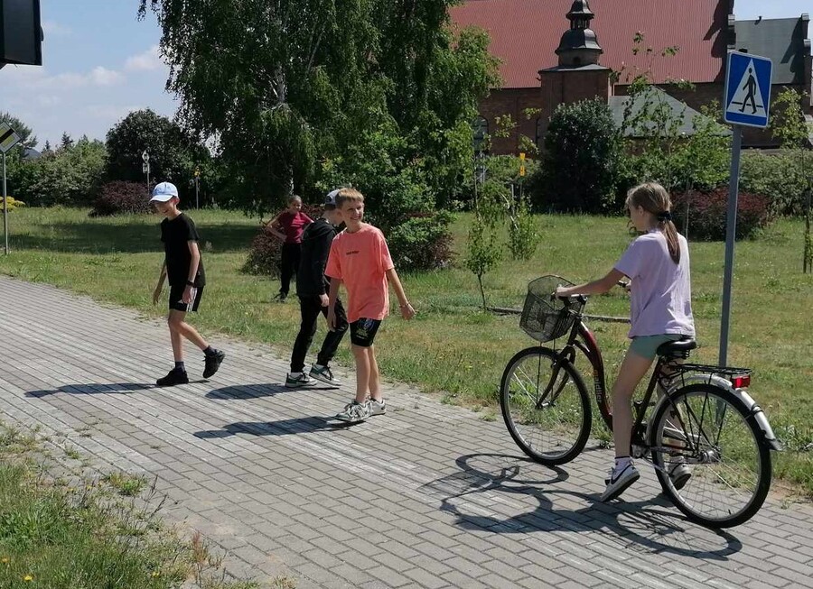 Po zakończonym egzaminie uczniowie stwarzali różne sytuacje na drodze, aby wykorzystać swoją wiedzę i umiejętności poruszania się po drodze jako pieszy i rowerzysta.