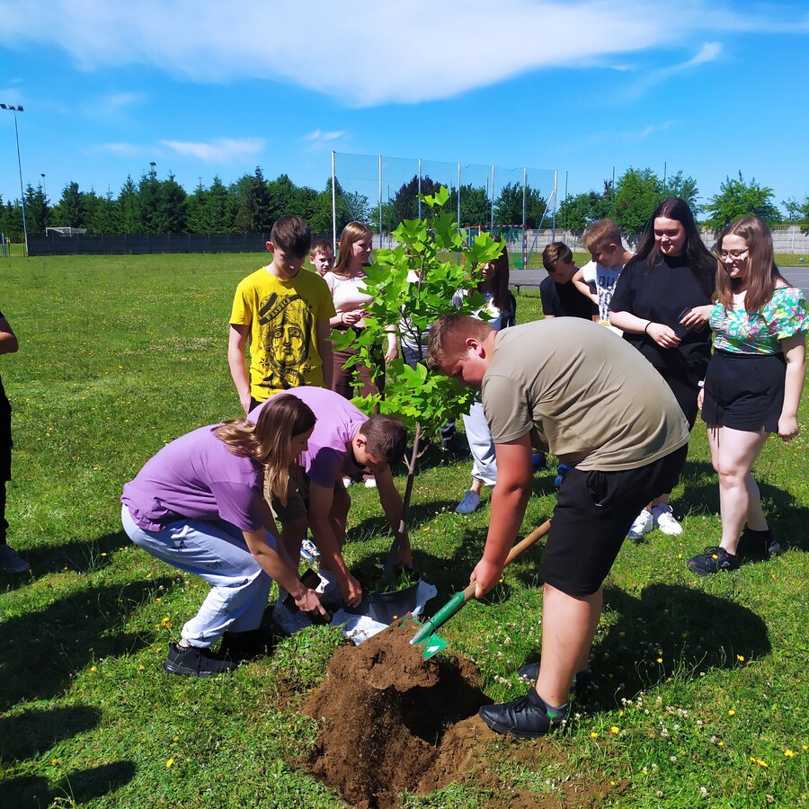22 czerwca uczniowie klasy 8b wraz z wychowawcą Mariolą Krawczyk oraz nauczycielkami Katarzyną Zagórną i Grażyną Kłoczaniuk zasadzili na boisku szkolnym drzewko. Ma być ono pamiątką wspólnie spędzonych 8 lat w Szkole Podstawowej w Trzcinicy. Uczniowie tej klasy mają nadzieję, że sadzenie drzew na terenie wokół szkoły stanie się tradycją i kolejne roczniki pójdą w ich ślady.