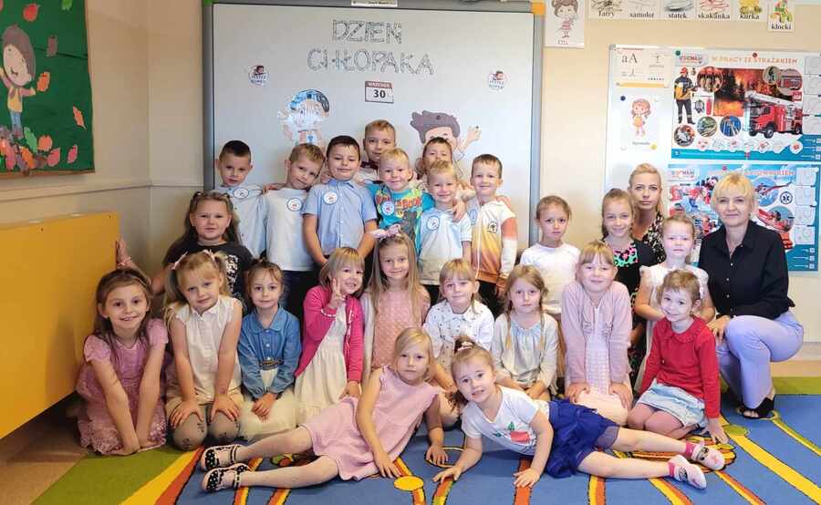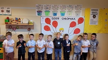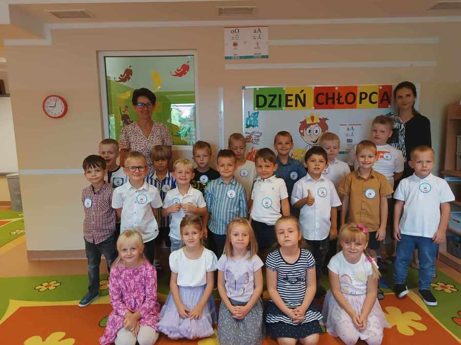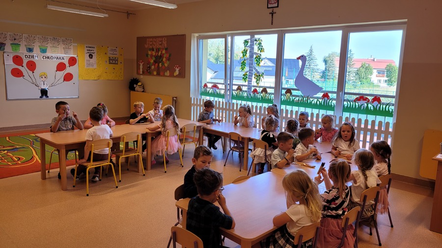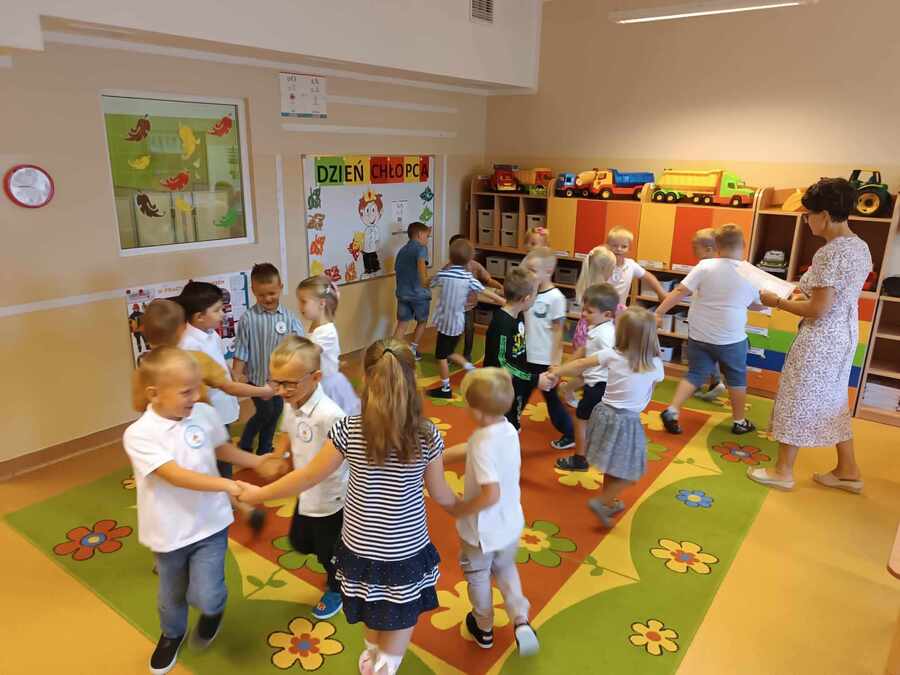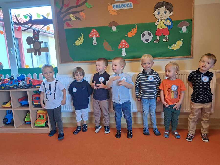 Przedszkolne obchody Dnia Chłopaka rozpoczęły się od samego rana 29 września 2023r. Już przy wejściu dziewczynki witały swoich kolegów słodkimi uśmiechami. Następnie w sali Muchomorków zgromadziły się wszystkie przedszkolaki by wspólnie świętować. Chłopcy przyjmowali tego dnia radosne życzenia i prezenty. Nie zabrakło przy tym dobrej zabawy. Po głównych uroczystościach dzieci w swoich salach zasiadły do słodkiego poczęstunku, ufundowanego przez rodziców. Tego dnia każdy chłopak wychodził z przedszkola z orderem „Super Chłopaka”.