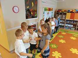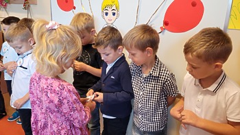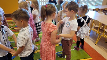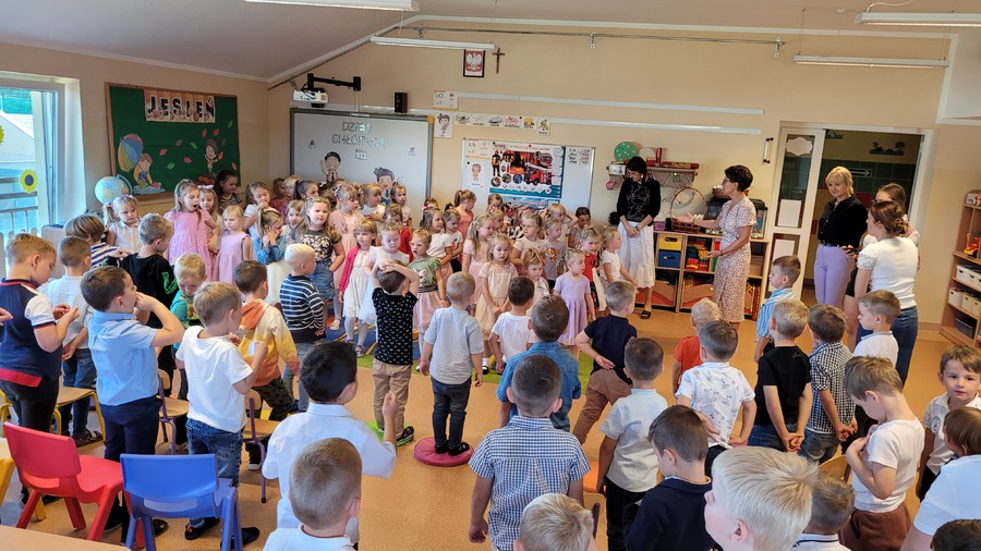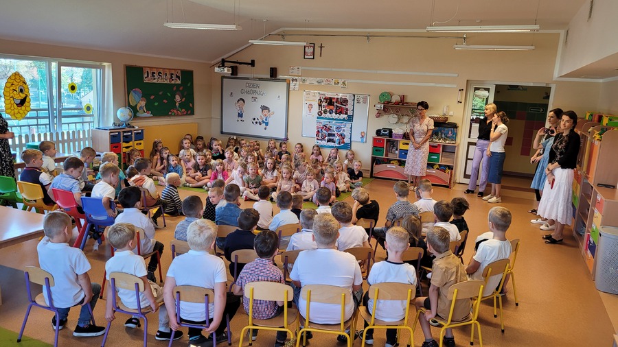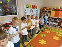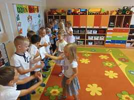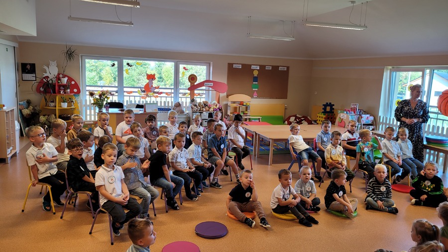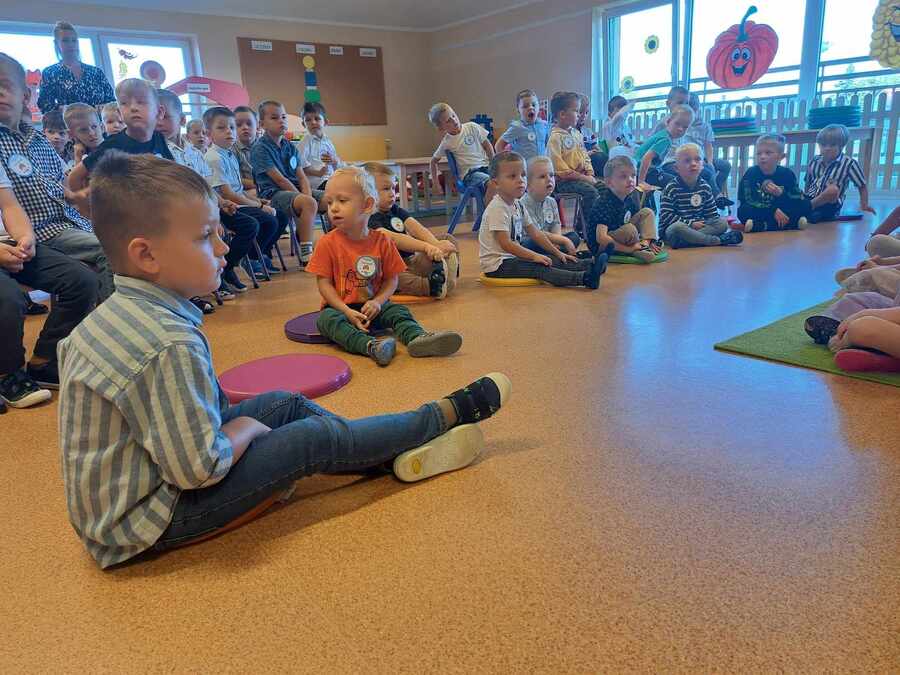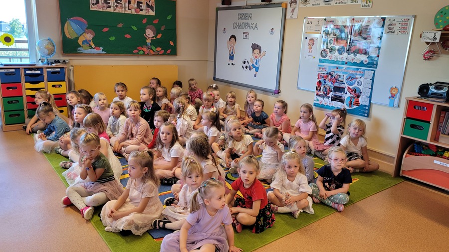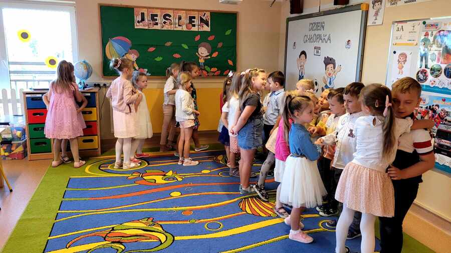 Przedszkolne obchody Dnia Chłopaka rozpoczęły się od samego rana 29 września 2023r. Już przy wejściu dziewczynki witały swoich kolegów słodkimi uśmiechami. Następnie w sali Muchomorków zgromadziły się wszystkie przedszkolaki by wspólnie świętować. Chłopcy przyjmowali tego dnia radosne życzenia i prezenty. Nie zabrakło przy tym dobrej zabawy. Po głównych uroczystościach dzieci w swoich salach zasiadły do słodkiego poczęstunku, ufundowanego przez rodziców. Tego dnia każdy chłopak wychodził z przedszkola z orderem „Super Chłopaka”.