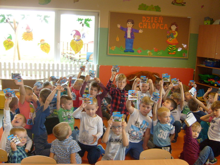 Dziewczynki z przedszkola nie zapomniały, że 30 września obchodzimy DZIEŃ CHŁOPCA. Wspólnie z paniami i mamami z Rady Rodziców przygotowały niespodziankę. Wszyscy chłopcy otrzymali to, czym najbardziej lubią się bawić - SAMOCHÓD. Zachwytom nie było końca. Głośne zaśpiewanie STO LAT i złożenie życzeń wszystkim chłopcom umilił słodki poczęstunek – lizaki, które otrzymały wszystkie dzieci.