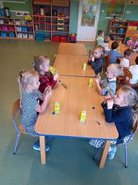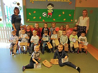 Przedszkolaki dziękują Radzie Rodziców za przygotowane z okazji Dnia Chłopca upominki i łakocie.