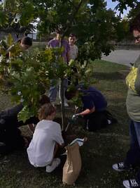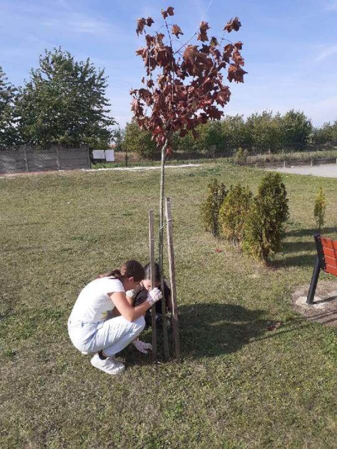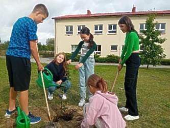 Prace nad projektem rozpoczęły się już w ubiegłym tygodniu. Porządkowaniu terenu przy drzewach, plewieniu, przycinaniu suchych gałązek i ostatniemu nawożeniu przed zimą sprzyjała piękna, słoneczna pogoda. Teren wokół naszej szkoły, na którym rośnie już wiele gatunków drzew wzbogacił się o kolejne cztery. Lipy, które wsadzali uczniowie w przyszłości zacienią część rekreacyjno-wypoczynkową.