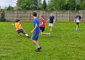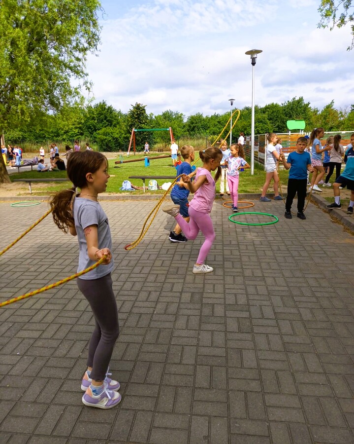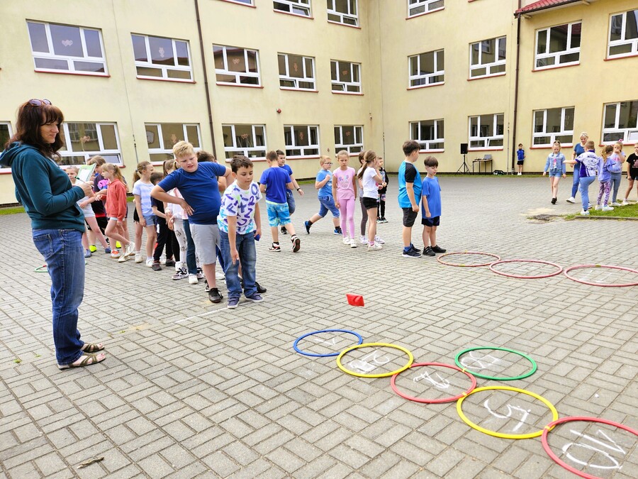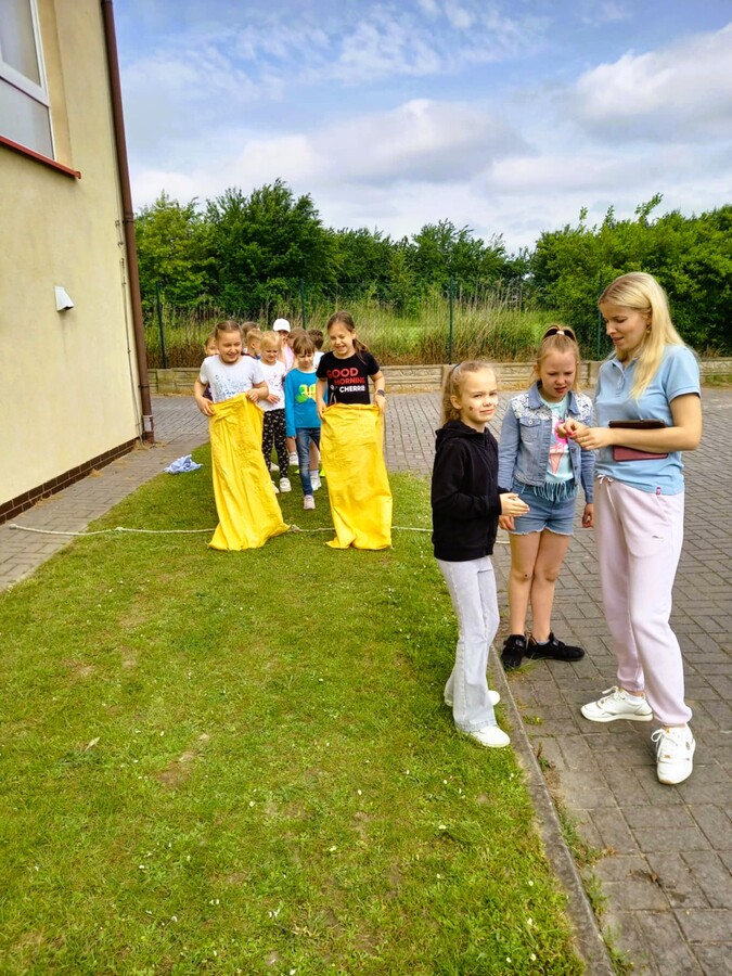 Pogoda sprzyjała zaplanowanym zajęciom sportowo-rekreacyjnym na świeżym powietrzu jakie zostały przygotowane na ten dzień dla naszych uczniów. Zarówno najmłodsi, jak i uczniowie starszych klas mogli korzystać do woli ze sprawdzenia się w przeróżnych konkurencjach sprawnościowych. Nie zabrakło przy tym mnóstwa śmiechu z odrobiną zdrowej rywalizacji.