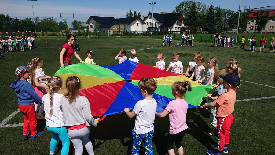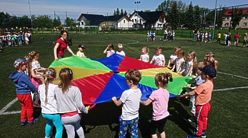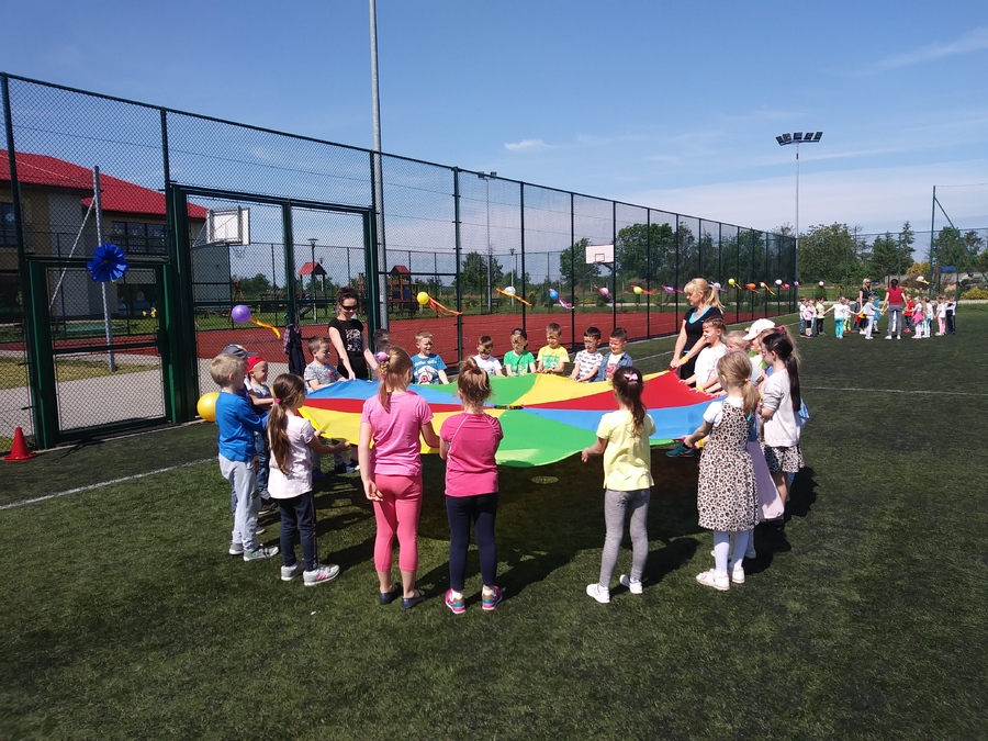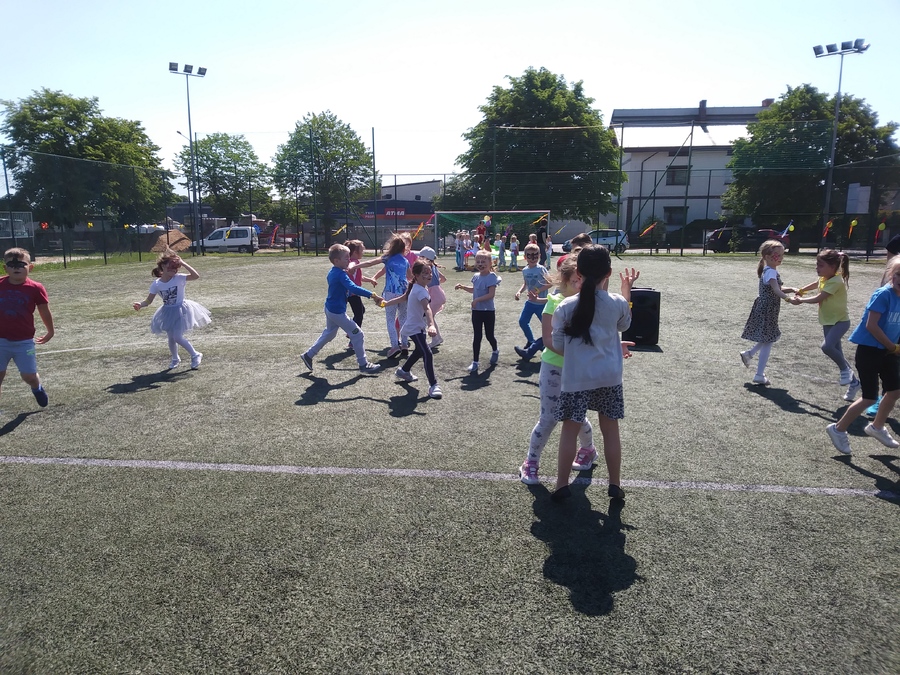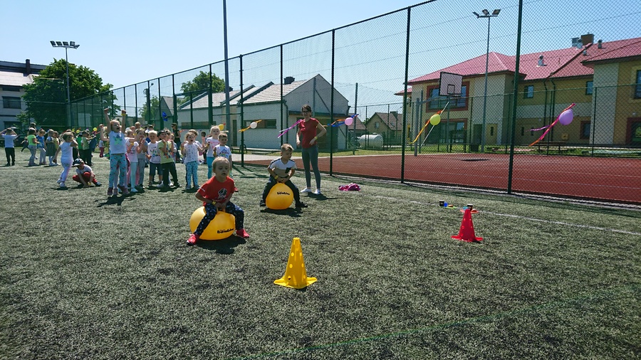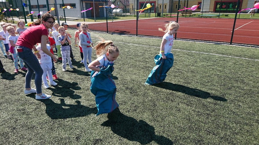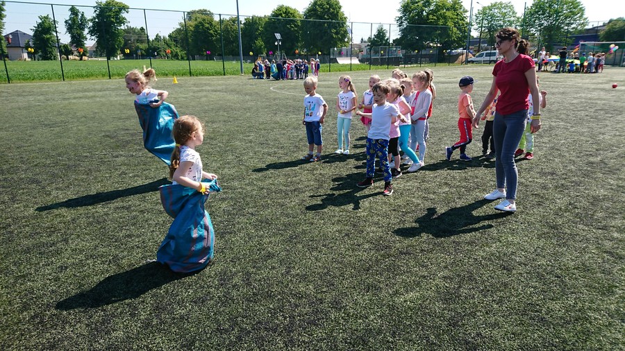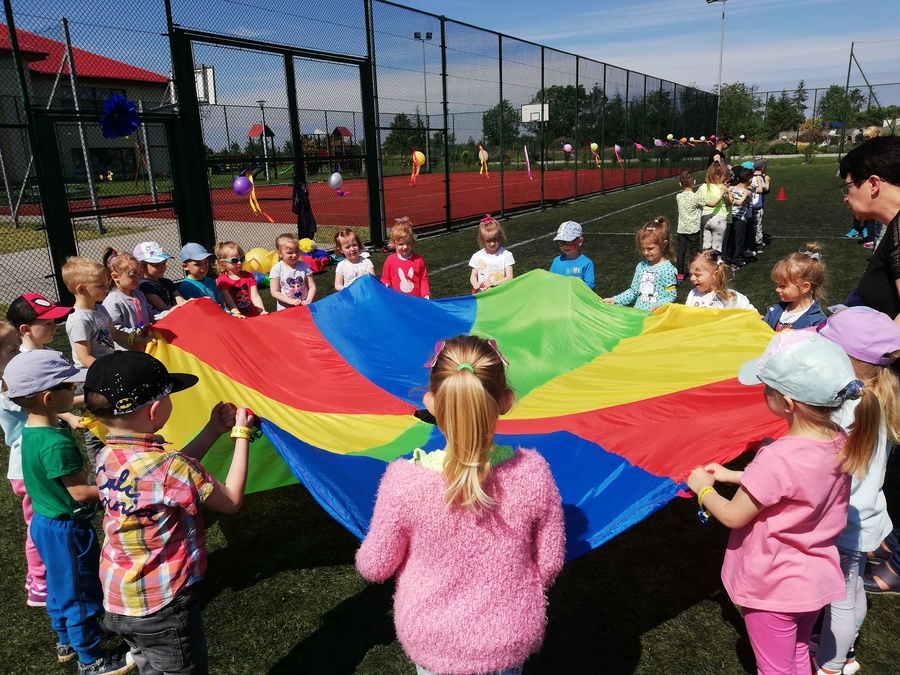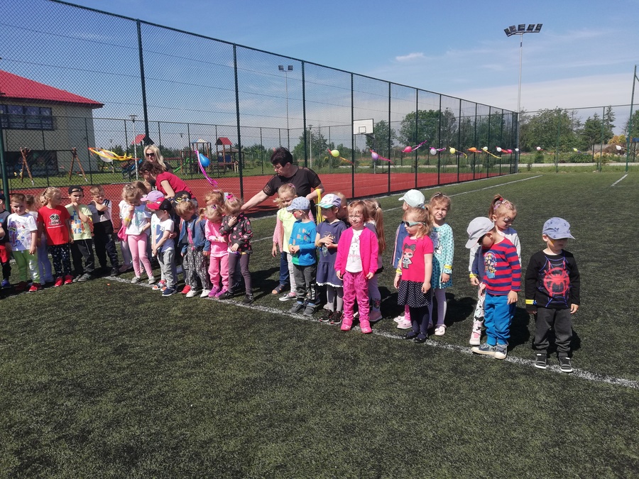 Wszystkie dzieci z przedszkola w Trzcinicy 31 maja 2019 roku obchodziły swoje święto. W tym roku nauczycielki wspólnie z pomocami nauczyciela postarały się, aby boisko „Orlik” zamieniło się w „kolorowy świat” z balonami, bibułami i kolorowym sprzętem sportowym. Roześmiane przedszkolaki z wszystkich grup przedszkolnych wspólnie uczestniczyły w zabawach z chustą animacyjną, skakały w workach i na piłkach „skoczkach”, przenosiły na tacy śniadanko, jeździły samochodami – brały udział w zdrowej rywalizacji. Najwięcej entuzjazmu wzbudziła nauka tańca „A ram sam sam”, w której udział wzięły nawet „maluszki” z najmłodszej grupy przedszkolnej i całkiem dobrze sobie poradziły. Nagrodą za wspólną zabawę były lody, które w tym ciepłym dniu smakowały wyśmienicie. Rada Rodziców zapewniła słodki poczęstunek i upominki w postaci kolorowych balonów w groszki.