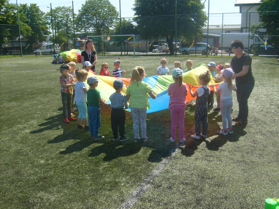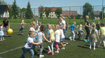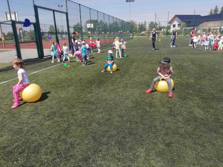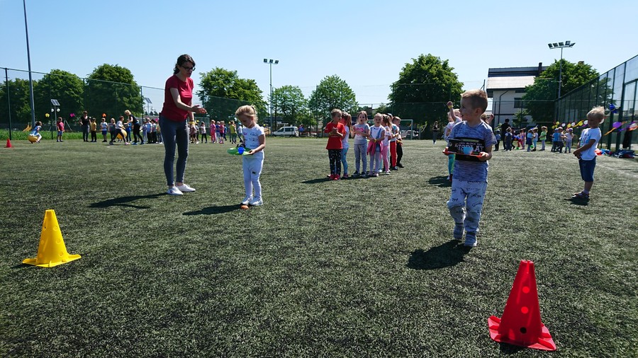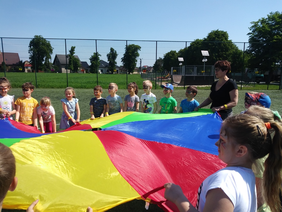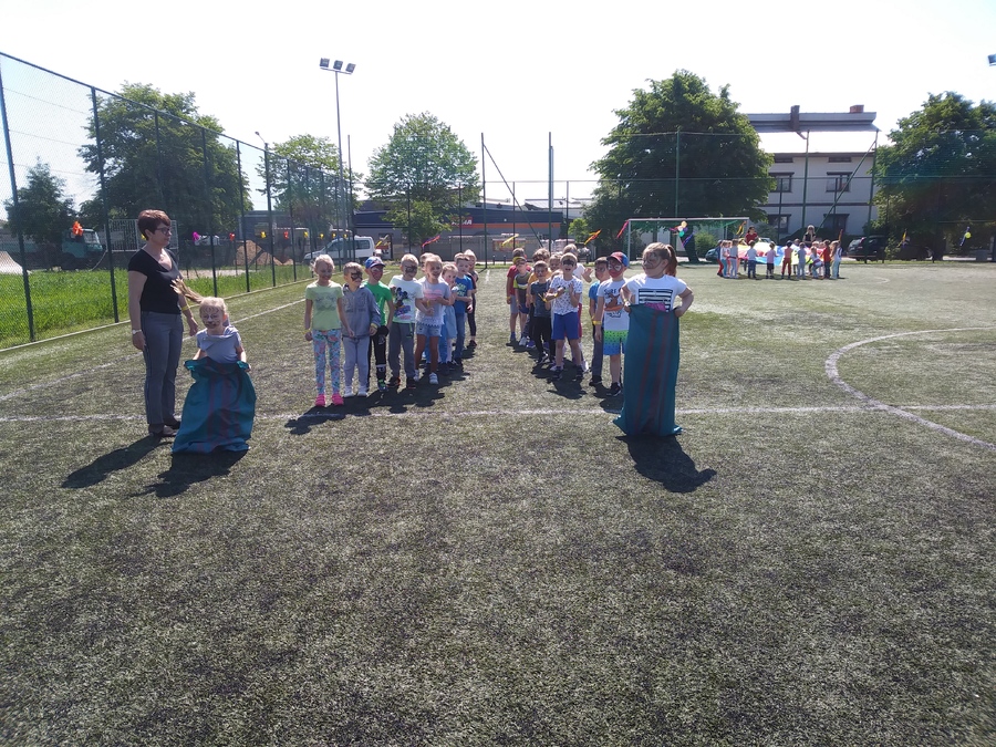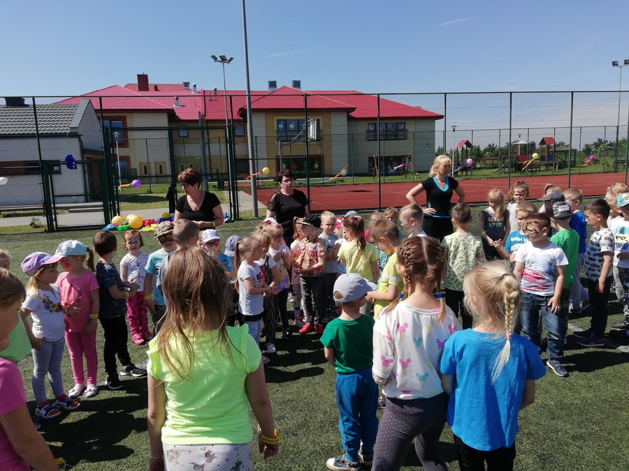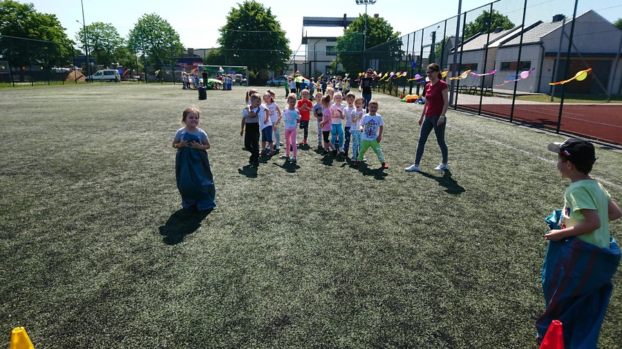 Wszystkie dzieci z przedszkola w Trzcinicy 31 maja 2019 roku obchodziły swoje święto. W tym roku nauczycielki wspólnie z pomocami nauczyciela postarały się, aby boisko „Orlik” zamieniło się w „kolorowy świat” z balonami, bibułami i kolorowym sprzętem sportowym. Roześmiane przedszkolaki z wszystkich grup przedszkolnych wspólnie uczestniczyły w zabawach z chustą animacyjną, skakały w workach i na piłkach „skoczkach”, przenosiły na tacy śniadanko, jeździły samochodami – brały udział w zdrowej rywalizacji. Najwięcej entuzjazmu wzbudziła nauka tańca „A ram sam sam”, w której udział wzięły nawet „maluszki” z najmłodszej grupy przedszkolnej i całkiem dobrze sobie poradziły. Nagrodą za wspólną zabawę były lody, które w tym ciepłym dniu smakowały wyśmienicie. Rada Rodziców zapewniła słodki poczęstunek i upominki w postaci kolorowych balonów w groszki.