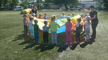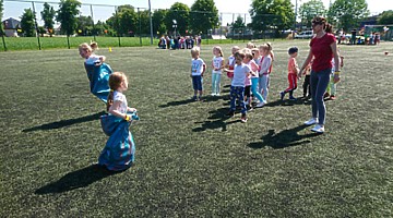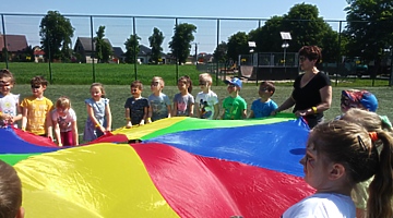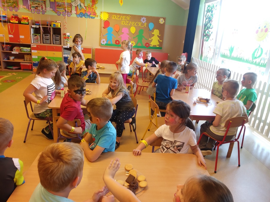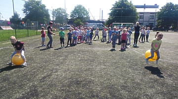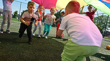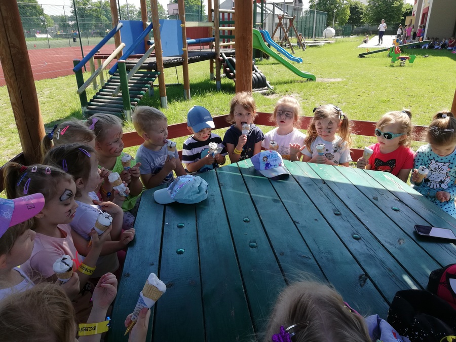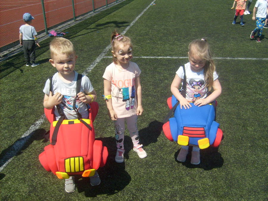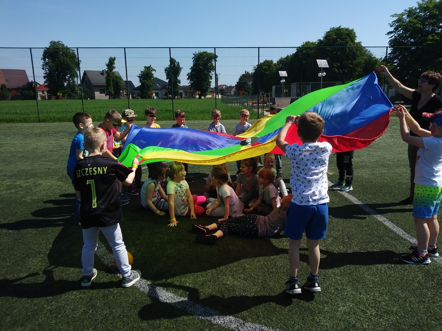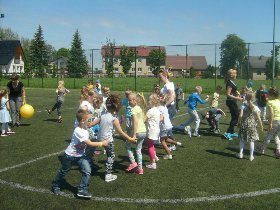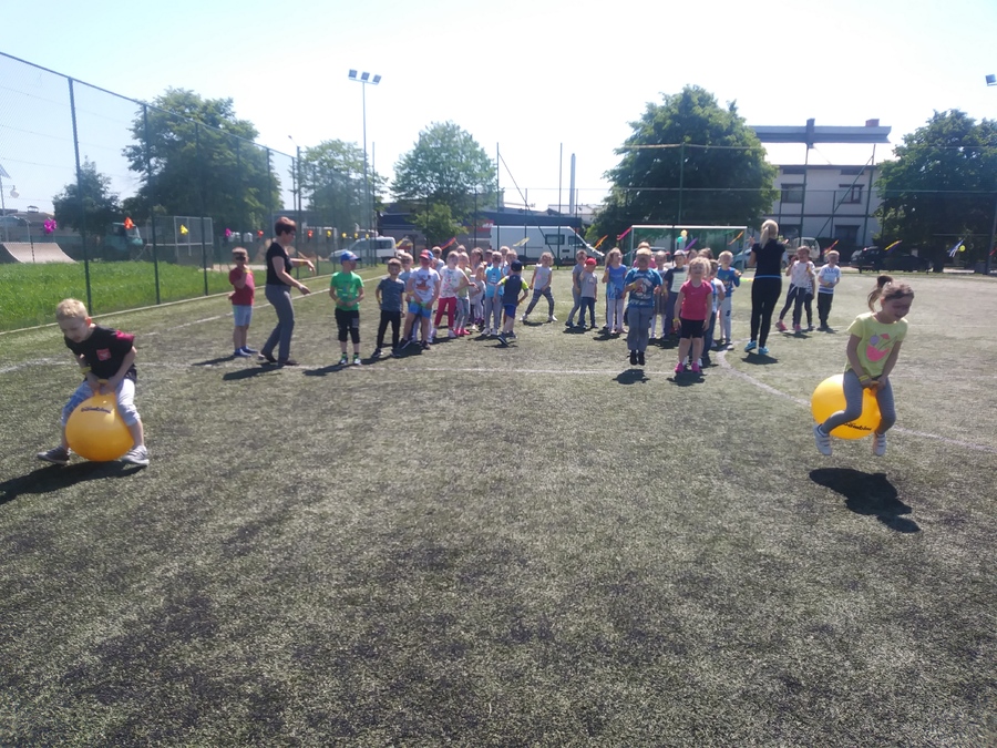 Wszystkie dzieci z przedszkola w Trzcinicy 31 maja 2019 roku obchodziły swoje święto. W tym roku nauczycielki wspólnie z pomocami nauczyciela postarały się, aby boisko „Orlik” zamieniło się w „kolorowy świat” z balonami, bibułami i kolorowym sprzętem sportowym. Roześmiane przedszkolaki z wszystkich grup przedszkolnych wspólnie uczestniczyły w zabawach z chustą animacyjną, skakały w workach i na piłkach „skoczkach”, przenosiły na tacy śniadanko, jeździły samochodami – brały udział w zdrowej rywalizacji. Najwięcej entuzjazmu wzbudziła nauka tańca „A ram sam sam”, w której udział wzięły nawet „maluszki” z najmłodszej grupy przedszkolnej i całkiem dobrze sobie poradziły. Nagrodą za wspólną zabawę były lody, które w tym ciepłym dniu smakowały wyśmienicie. Rada Rodziców zapewniła słodki poczęstunek i upominki w postaci kolorowych balonów w groszki.