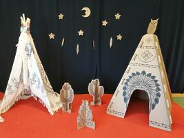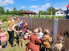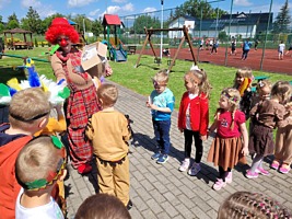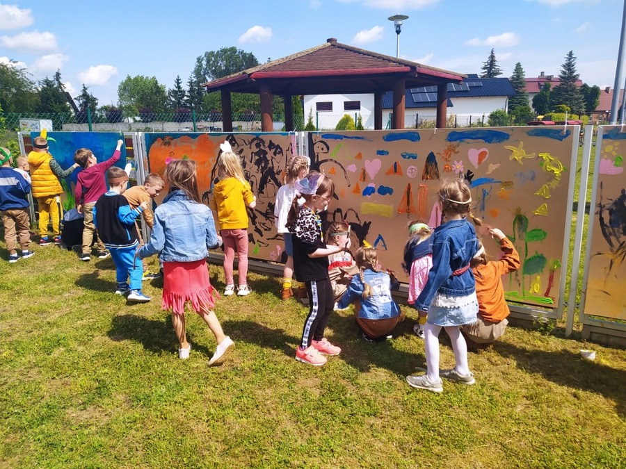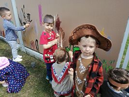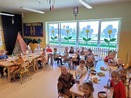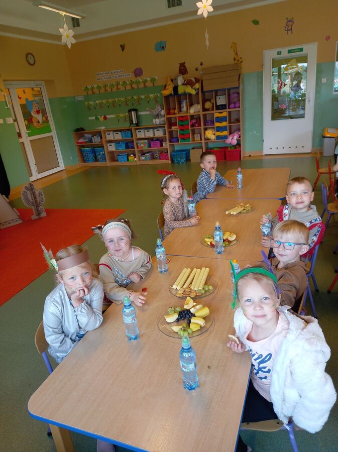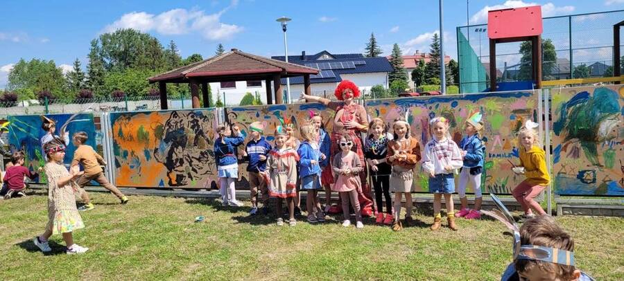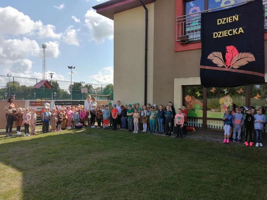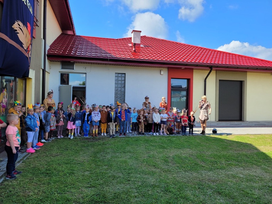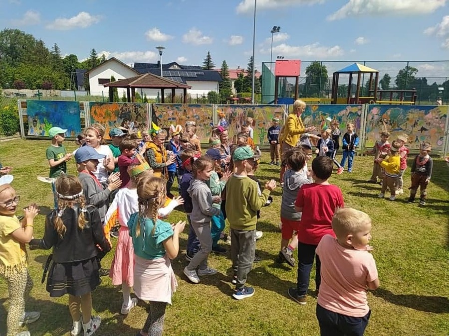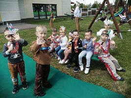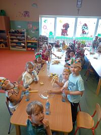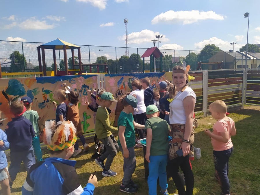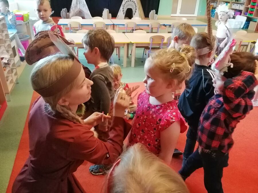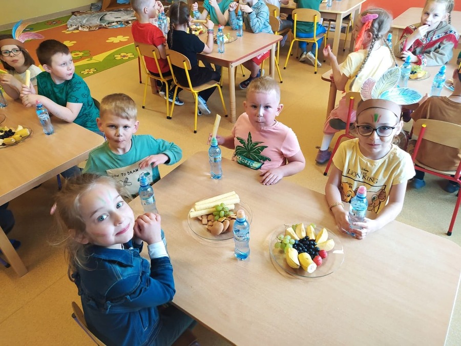 1 czerwca w naszym przedszkolu obchodziliśmy Dzień Dziecka. W tym roku hasłem przewodnim uroczystości była „Indiańska wioska”, a dzieci stały się małymi Indianami. Przedszkolaki uczestniczyły w rozmaitych zabawach, dzięki którym rozwijały aktywność twórczą i rozbudzały ciekawość życiem Indian. Dzieci dowiedziały się, że „Tipi” to rodzaj namiotu Indian Ameryki Północnej oraz nauczyły się okrzyku plemienia Indian. Wykonały własne pióropusze, malowały wspólnie farbami.