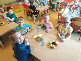 Rada Rodziców z okazji Dnia Dziecka przygotowała dla przedszkolaków słodki poczęstunek, były ciasteczka, ulubione przez wszystkich chrupki i owoce.