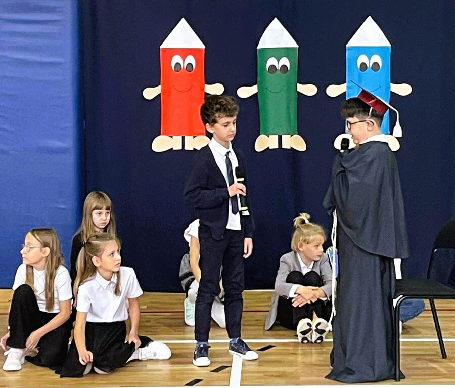 Spotkanie było również okazją do podsumowania przez panią Mariolę Krawczyk i panią Magdalenę Wypych, konkursu o tytuł Klasowego Mistrza Tabliczki Mnożenia, który odbywał się w naszej szkole w ostatnich dniach.