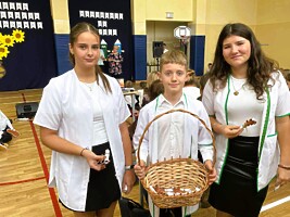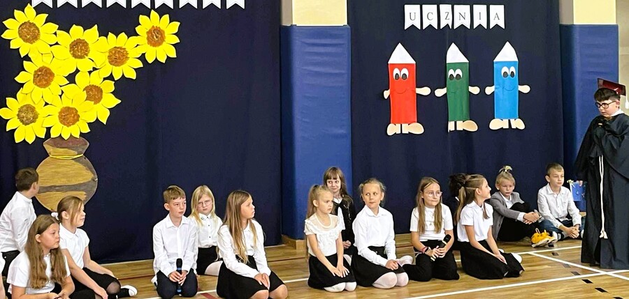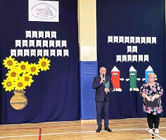 Głos zabrali również zaproszeni goście Wójt Gminy Trzcinica pan Grzegorz Hadzik oraz pani Małgorzata Hadzik, którzy złożyli życzenia wszystkim uczniom i nauczycielom oraz gratulowali trzecioklasistom pięknej części artystycznej.