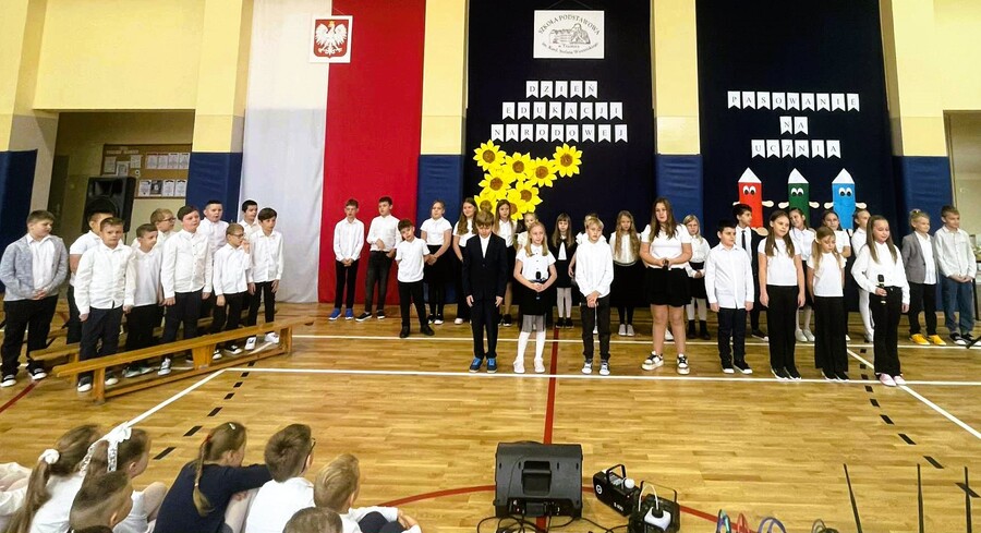 Wspólne obchody tego wyjątkowego dnia rozpoczęła dyrektor szkoły Pani Ewa Hetmańczyk witając przybyłych na uroczystość gości, uczniów, nauczycieli i pracowników szkoły i składając wszystkim serdeczne życzenia z okazji obchodzonego święta.