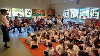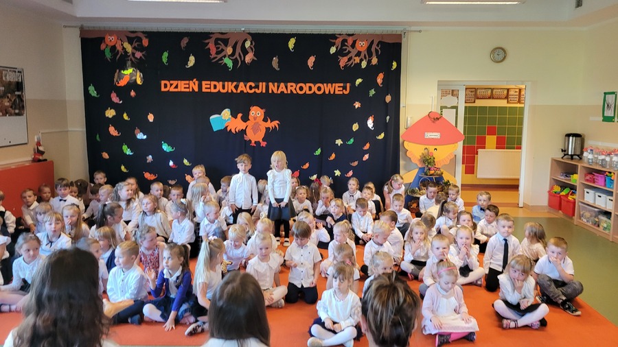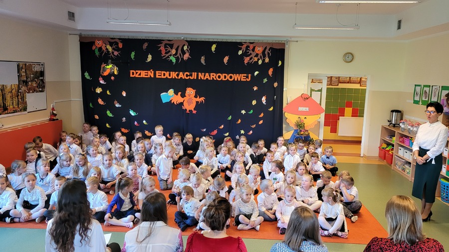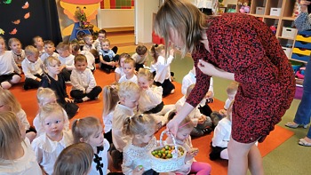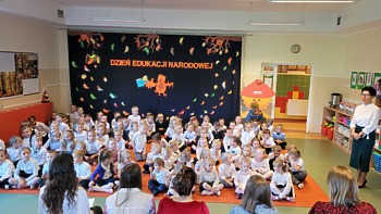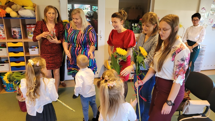 13 października 2023r. „dzieci zwołały zebranie w sprawie przygotowania niespodzianki dla swojej pani” - to w rzeczywistości fragment inscenizacji, którą przedszkolaki przedstawiły pracownikom przedszkola oraz zaproszonym gościom z okazji przypadającego w sobotę święta. Było niezwykle uroczyście, ale i wesoło.