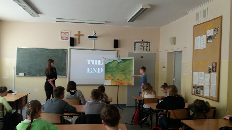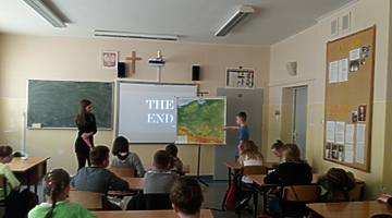 Podczas tego dnia uczennice klasy IIIa i IIIb Gimnazjum, Marta Krawczyk i Julia Parzonka, przygotowały lekcję geografii dla kl. V Szkoły Podstawowej pt. „Ośrodki turystyczne w Polsce”. Lekcja cieszyła się dużym zainteresowaniem ze strony uczniów, którzy bardzo aktywnie w niej uczestniczyli.