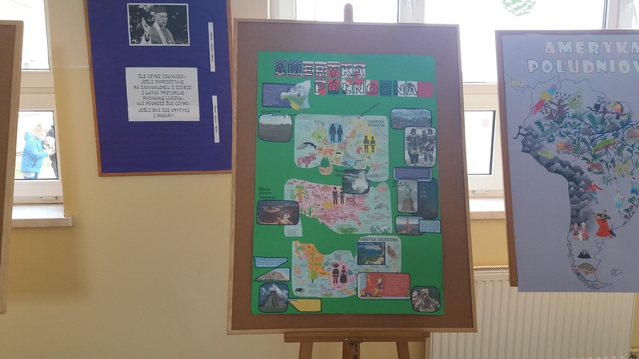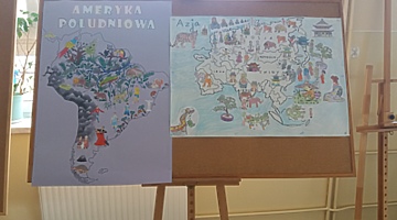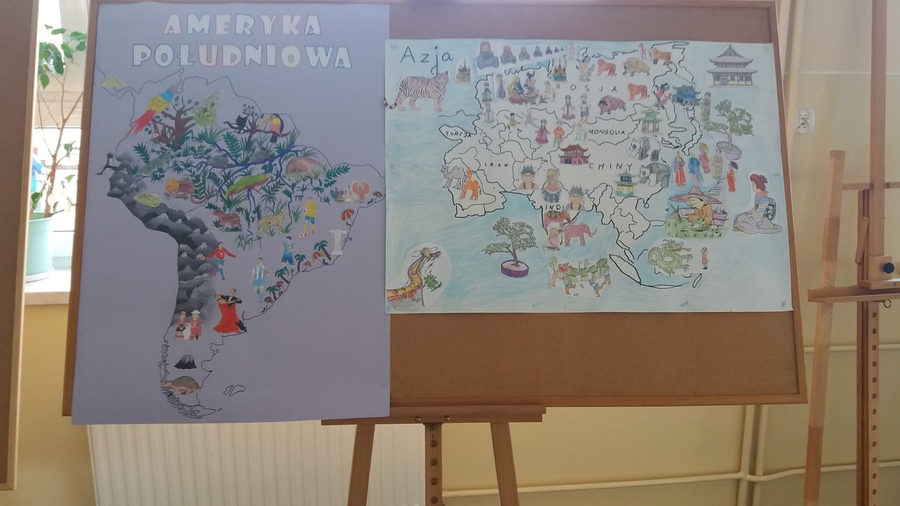 Uczniowie klas I-III Szkoły Podstawowej wykonali na Dzień Geograficzny plakaty, przedstawiające kontynenty naszej planety. Na tych plakatach umieścili szereg interesujących informacji na temat wybranego przez siebie kontynentu.