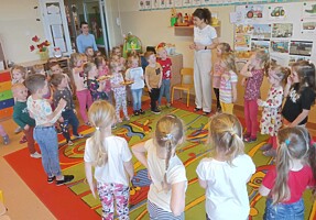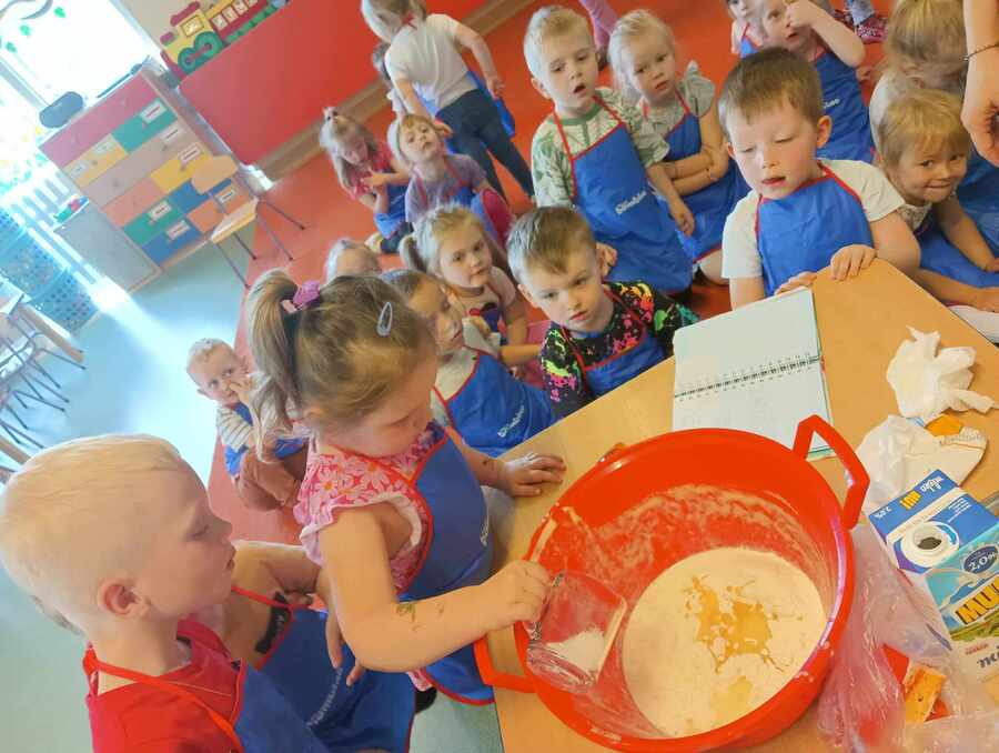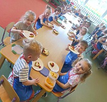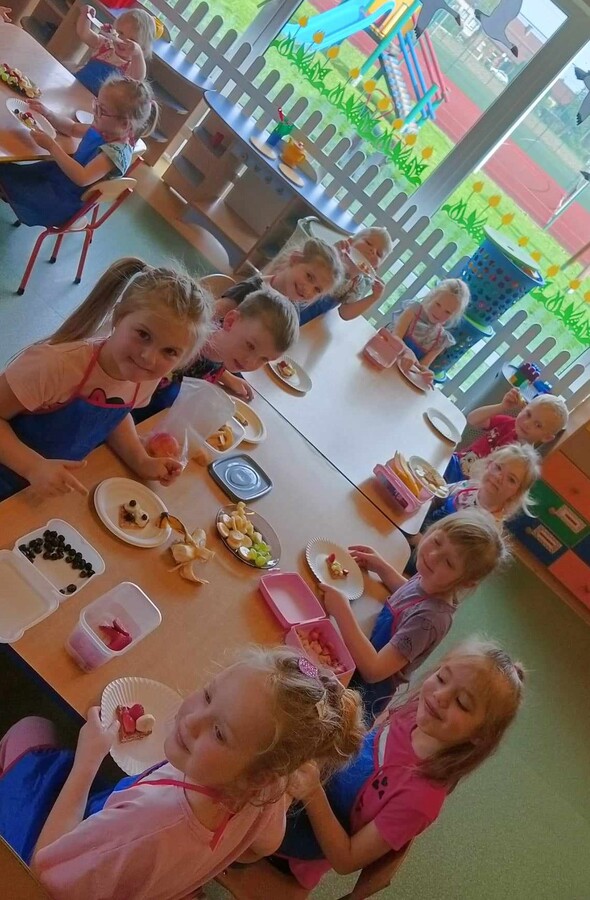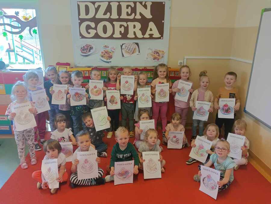 8 kwietnia grupa Krasnoludki, w ramach realizacji projektu obchodziła „ Dzień gofra” w ramach realizacji projektu KREATYWNE DNI NIETYPOWE. Dzień ten rozpoczęliśmy od zapoznania się z pojęciem książka kucharska. Przed rozpoczęciem pieczenia, dzieci poznały zasady bezpiecznego zachowania w trakcie korzystania z urządzeń elektrycznych w kuchni. Następnie zmieniły się w kucharzy i pod czujnym okiem wychowawczyni rozpoczęły tworzenie gofrów. Dzieci krok po kroku odważały potrzebne produkty, a następnie z zachowaniem szczególnej ostrożności upiekły przygotowane ciasto, które zmieniło się w pyszne, chrupiące gofry. Każdy Krasnoludek sam dobierał sobie owoce, które najbardziej lubi i ozdabiał nimi swoje gofry. Nie zapomnieliśmy także o dzieciach i paniach z innych grup, które obdarowaliśmy tymi smakołykami.