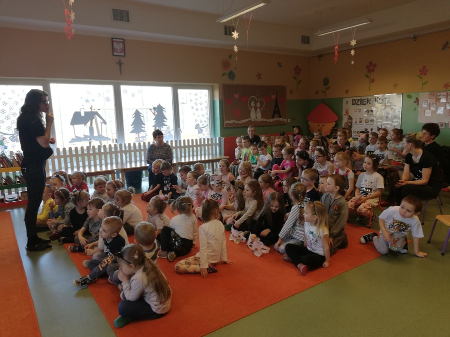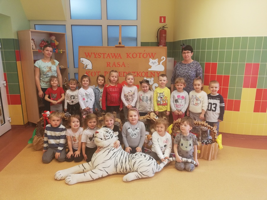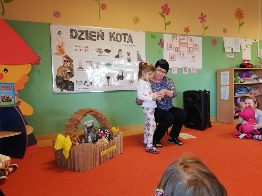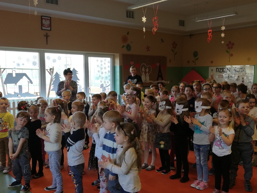 Z okazji Światowego Dnia Kota dzieci wspólnie z nauczycielkami z przedszkola w Trzcinicy postanowiły zorganizować w poniedziałek 18 lutego 2019r. zajęcia i zabawy pod takim właśnie hasłem. W tym dniu rodzice z każdej grupy przedszkolnej mieli okazję uczestniczyć w zajęciach otwartych. Przedszkolacy przebrani za koty, ubrani w odzież z wizerunkiem kota, oraz z kotami zabawkowymi bawili się tego dnia z rodzicami poznając cechy charakterystyczne tych zwierząt, ucząc się jak należy dbać o nie, aby właściciele i koty żyli zdrowo i szczęśliwie. Słuchały piosenek, wierszy i bajek, wspólnie z rodzicami wykonywali papierowe zabawki, kocie maskotki i wiele innych ciekawych rzeczy. W wejściu budynku zorganizowana została wystawa kota przedszkolnego, którą można podziwiać do końca tygodnia. Zakończeniem „kociego dnia” było obejrzenie teatrzyku pt.: „Przygoda kota z kogutkiem”, który został przygotowany przez mamy z grupy „Jeżyki” panie: Annę Bartkowiak, Sylwię Durkę i Karolinę Ozdobę. Inicjatorką tego przedstawienia była Aurelia Woźnica – wychowawca tej grupy przedszkolnej. Na zakończenie dnia dzieci otrzymały kocie ordery za wspólną pracę i zabawę. Był to udany dzień zarówno dla dzieci, jak i uczestniczących w nim rodziców.