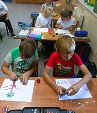 Dzieci jeszcze przed rozpoczęciem zajęć ozdabiali swoje ubrania kropkami. Dzień Kropki był dobrą okazją do klasowych pogadanek i rozmów o dziecięcych talentach i zdolnościach, kreatywności oraz wiary we własne siły i możliwości.